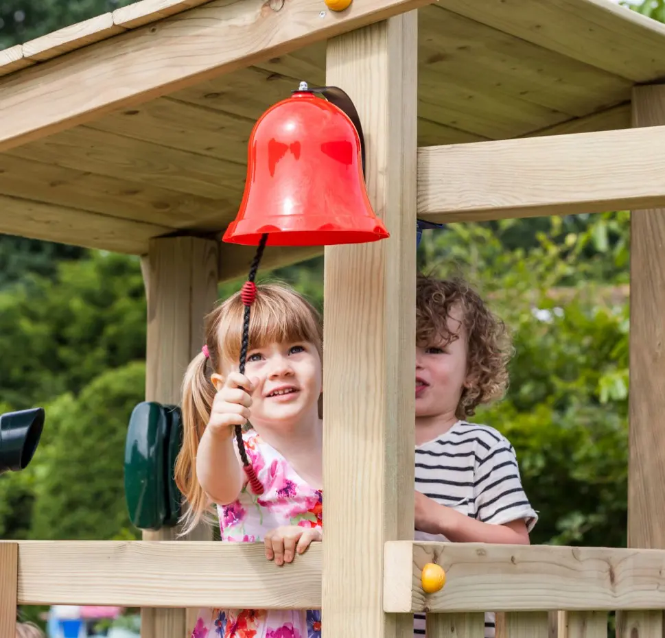 Eine lustige, rote Glocke von KBT für die Kinder. Sehr gut geeignet zum Anbringen an ein Spielhaus oder Spielgerät. Diese Glocke ist im Stil einer echten Kirchenglocke gestaltet und aus Kunststoff mit einem Metall-Innenwerk gefertigt. Die Spielzeugglocke klingelt wirklich, aber der Klang ist gedämpft, sodass er die Umgebung nicht stört. Läuten Sie die Glocke!