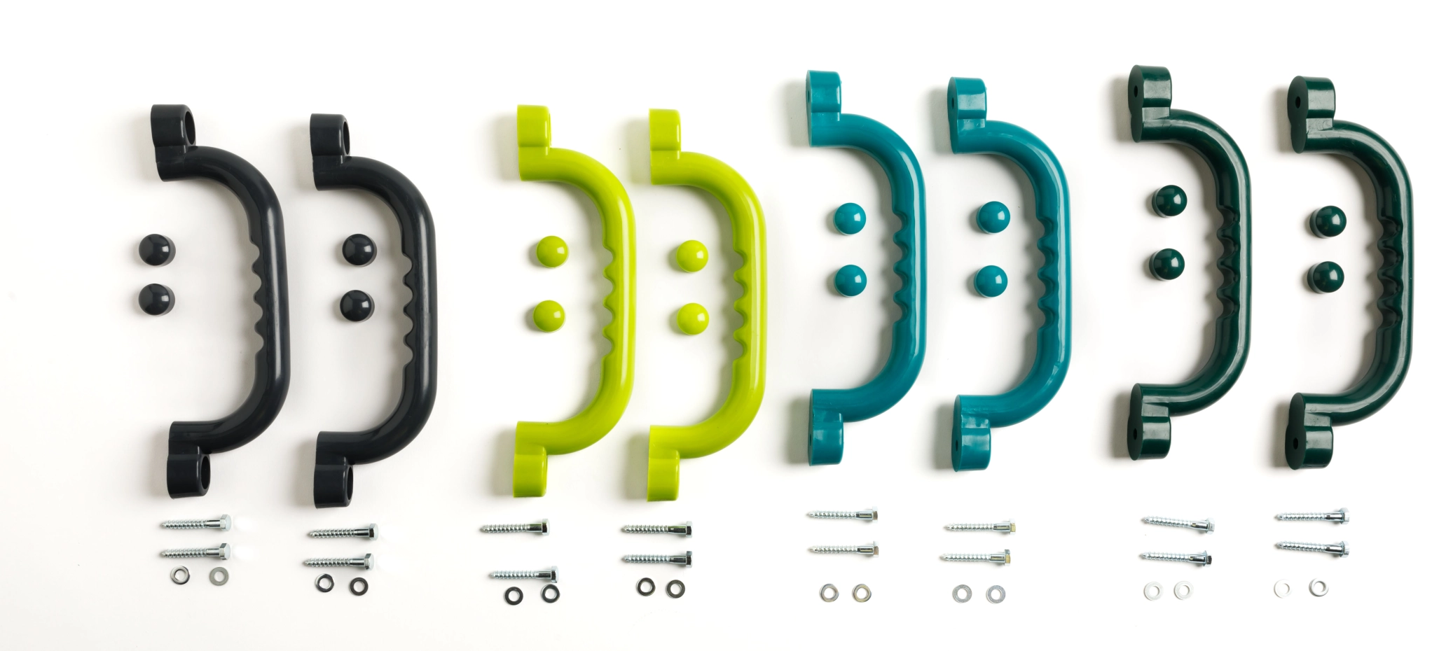 Brauchen Sie einen zusätzlichen Griff? Befestigen Sie ein lustiges Handgriff-Set an Ihrem Spielgerät. Es gibt viele tolle Farben zur Auswahl. Die Handgriffe geben dem Kind ein zusätzliches Sicherheitsgefühl. Dieses türkise Handgriff-Set besteht aus 2 Stück, inklusive des benötigten Befestigungsmaterials.