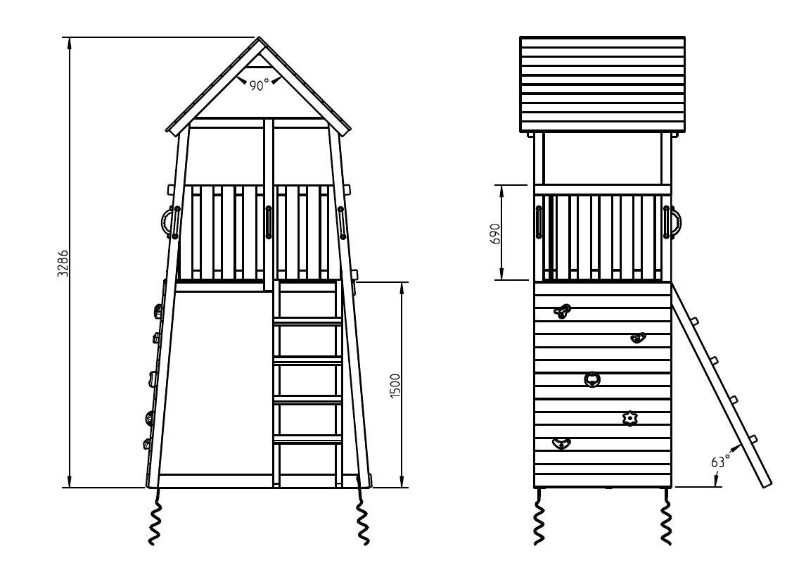 Genießen Sie weitreichende Ausblicke von diesem Belvedere-Spielturm! Er ist ideal für kleinere Gärten, da sowohl die Rutsche als auch die Leiter an der Vorderseite angebracht sind. Die schrägen Wände und die integrierte breite Kletterwand verleihen dem Turm sein besonderes Aussehen. Die Rutsche besteht aus drei gut aufeinander abgestimmten Teilen. Die Plattformhöhe beträgt 150 cm.