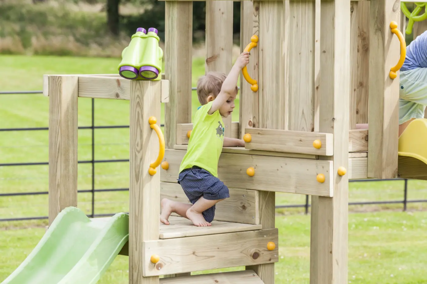 Der Blue Rabbit Cascade ist ein wunderschönes Spielgerät, das Kinder sofort lieben werden aufgrund seines charmanten Aussehens. Der Spielturm hat eine Plattformhöhe von 60 und 90 cm. Kinder jeden Alters können den Spielturm leicht über die schräge Holzrampe erreichen. Durch die Kombination mit der Anbauschaukel @swing bietet der Spielturm noch mehr Abwechslung und Spielspaß!