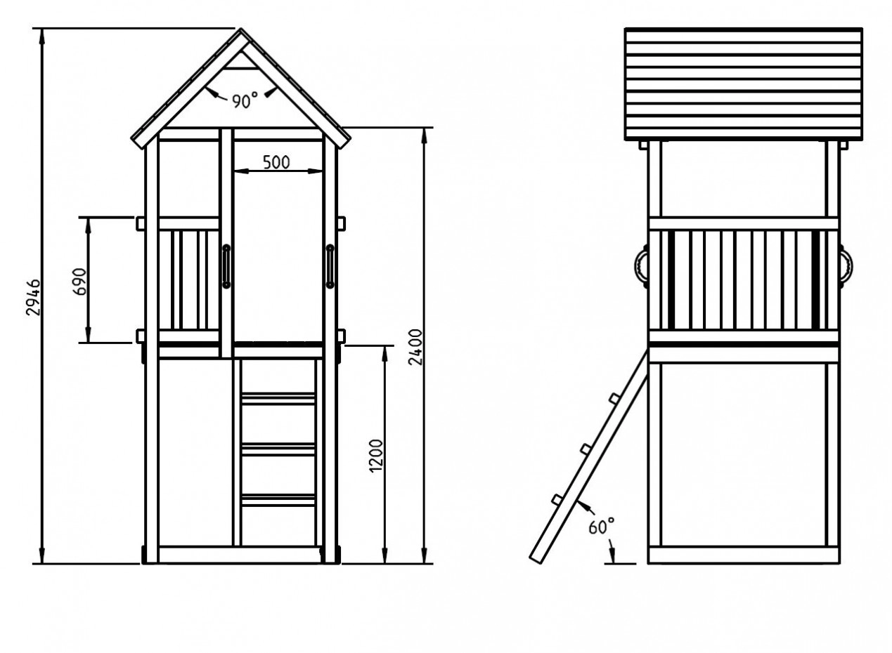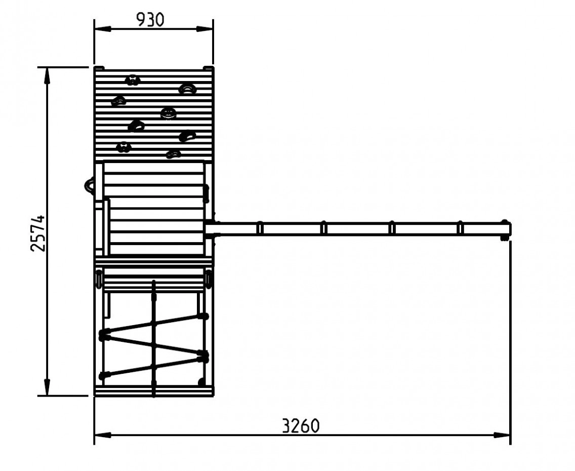 - Ohne Sandkastenabdeckung. Dieses Spielgerät wird mit einem aufrechten Brett am Boden geliefert. Es ist möglich, ein zusätzliches Brett und eine Sandkastenabdeckung zu bestellen, so dass Sie den Spielplatz mit einem geschlossenen Sandkasten versehen können