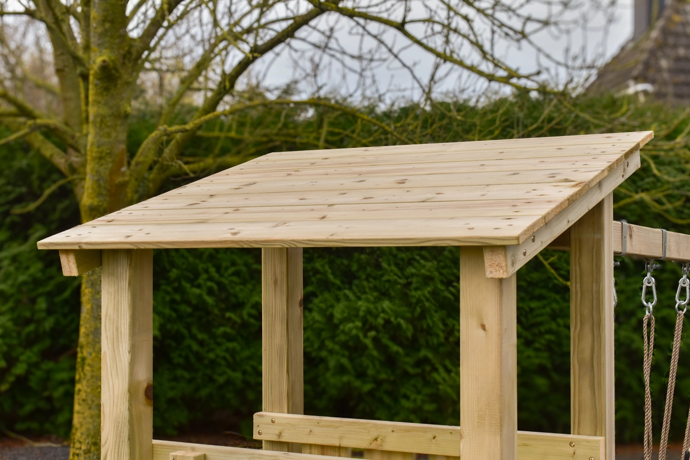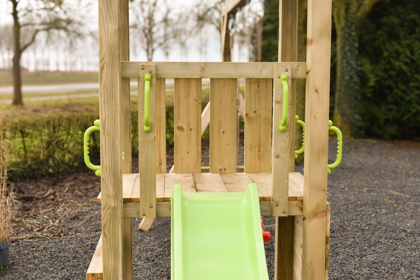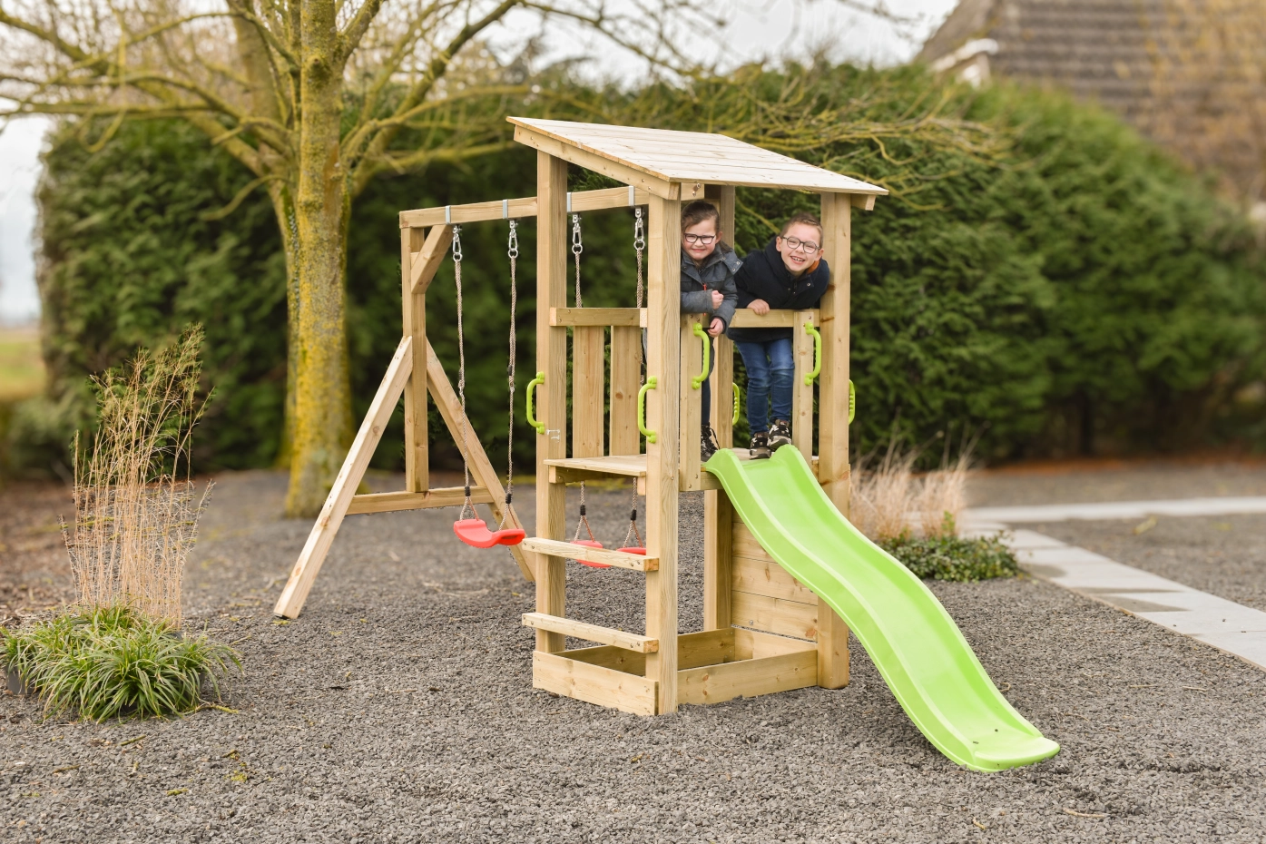 Das Spielgerät Plan 90+ ist ein robustes Holzspielgerät, das stundenlangen Spielspaß im Freien garantiert. Mit Doppelschaukel, Kunststoff Rutsche und herausfordernder Kletterwand bietet es viel Abwechslung. Die erhöhte Spielplattform mit Dach dient als Spielhaus oder Aussichtspunkt. Das „+“ bei Plan 90+ steht für das dichtere Geländer, das zusätzliche Sicherheit bietet. Spielgerät Plan 90+ ist ideal für abenteuerlustige Kinder ab 3 Jahren.