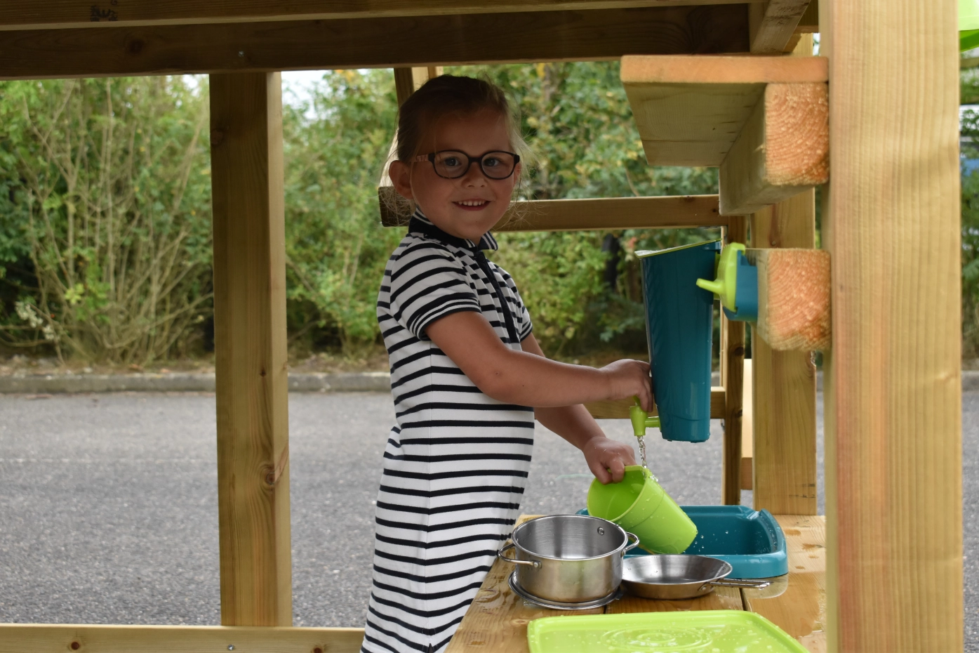 Die Matschküche unter dem Spielhaus sorgt für zusätzliche Herausforderungen und Spielspaß!