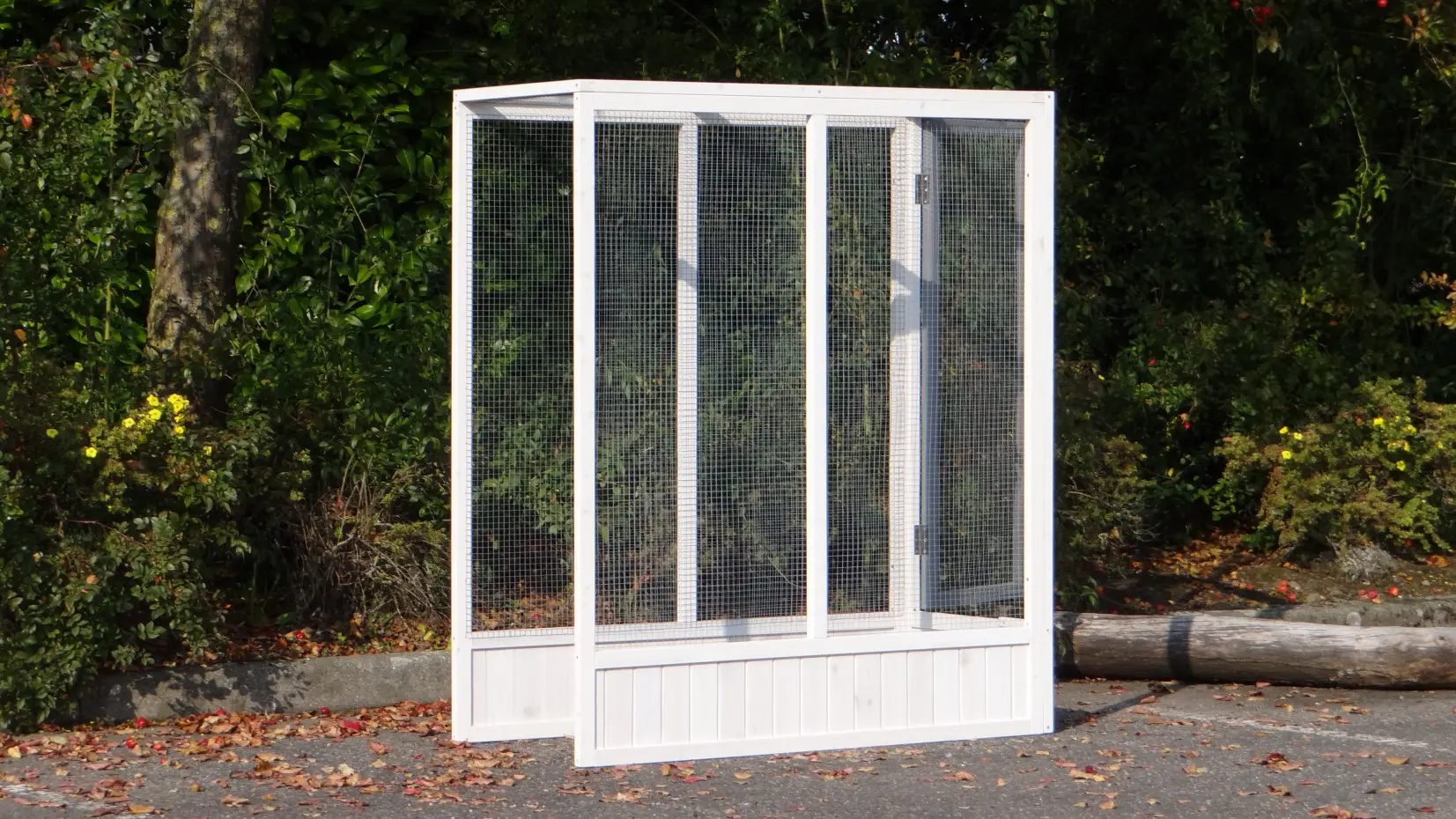 - Diese Volière-Auslauf ist aus schönem Kiefernholz gefertigt