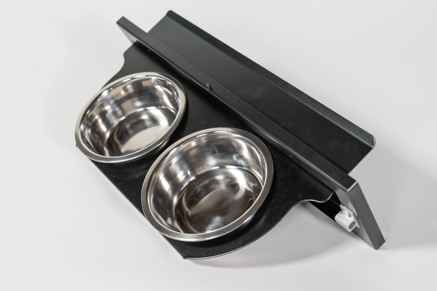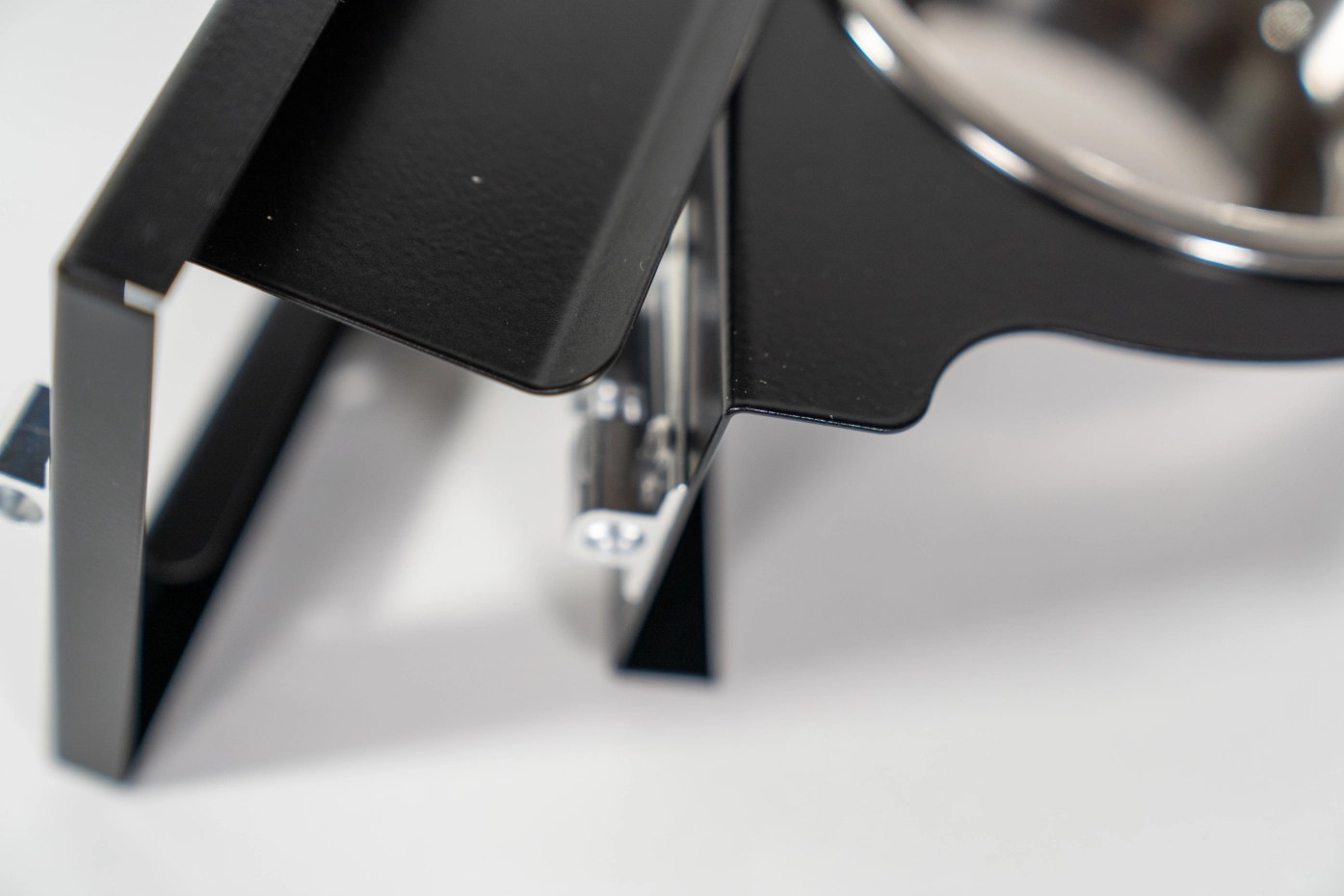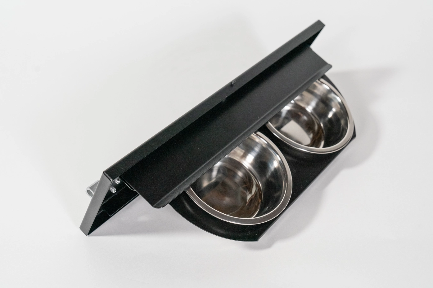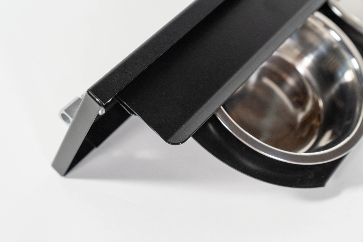 Drehbares Füttersystem für in die Voliere. Dieses System kann einfach montiert werden. Er ist erst verzinkt und dann schwarz pulverbeschichtet. Das System ist ausgestattet mit 2 RVS Näpfe. Die Näpfe haben ein Durchschnitte von 13cm.