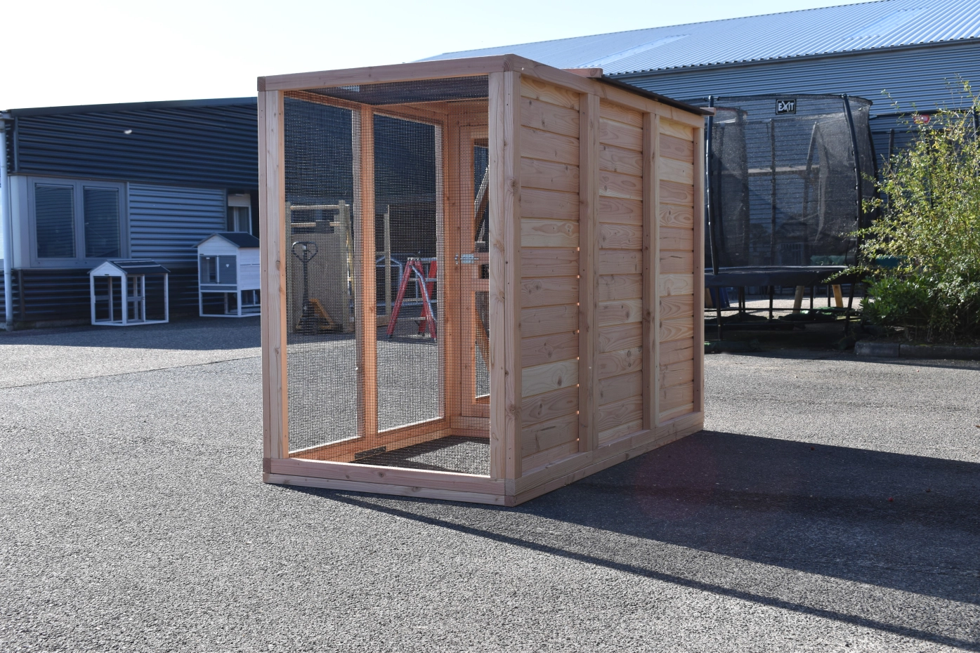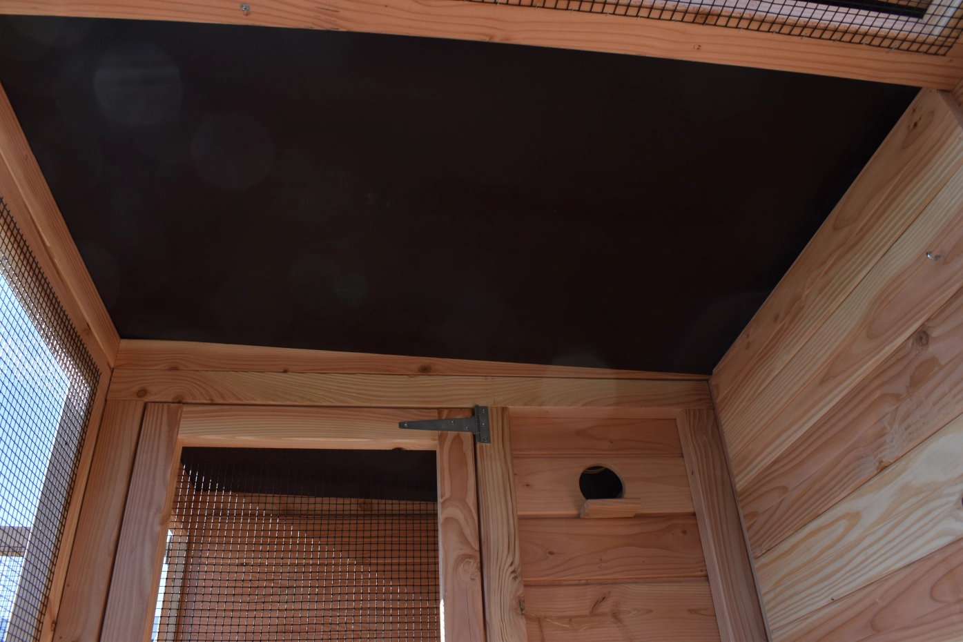 - Das Schlafhaus der Voliere ist verriegelbar