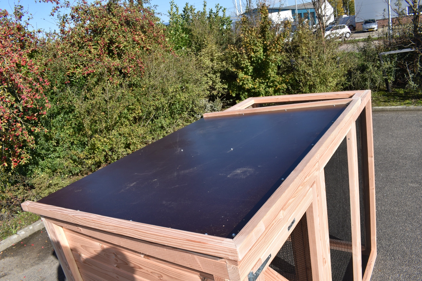 - Wenn draußen eine hohe Luftfeuchtigkeit herrscht, ist es auch im Inneren eines Stalls feucht. Die Innenseite von der Käfig können Sie lasieren um Schimmelbildung zu verhindern.