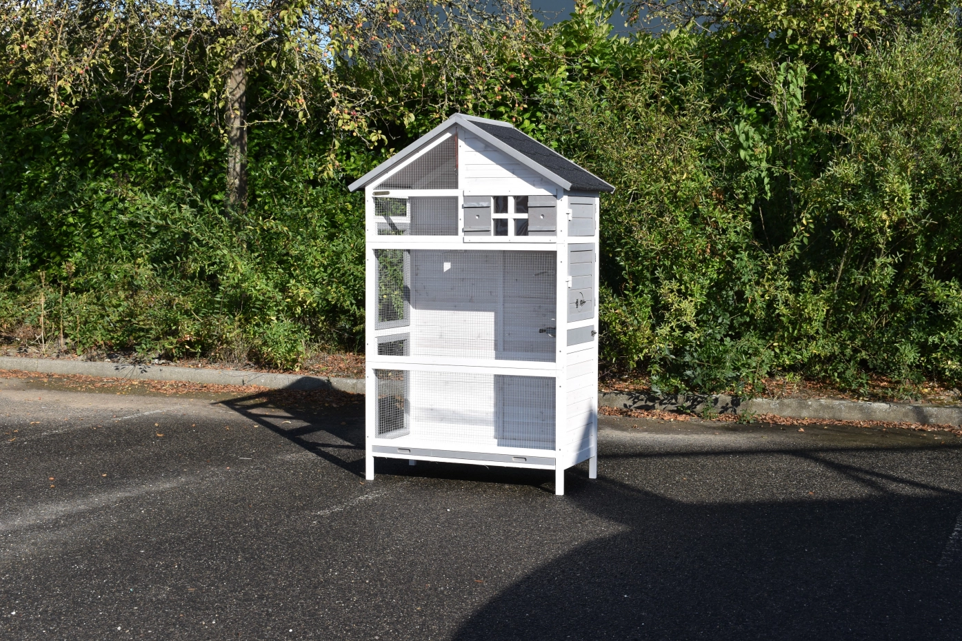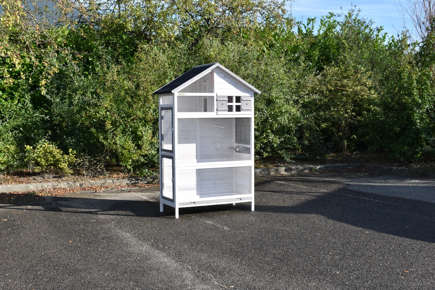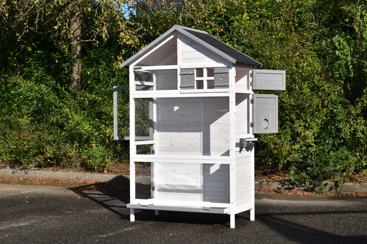 - Diese Volière verfügt für optimale Zugänglichkeit über großzügige Türen