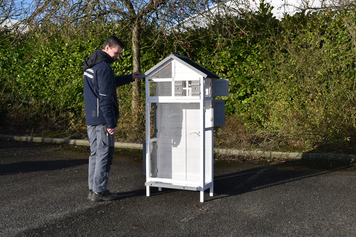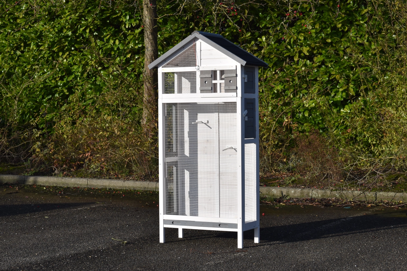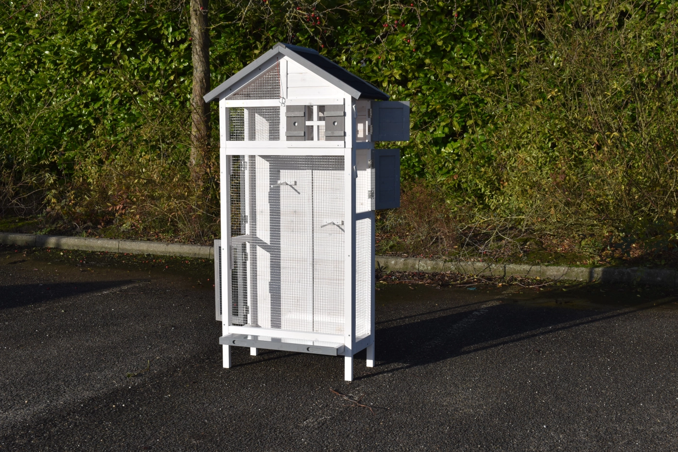 • Diese Volière ist aus schönem Kiefernholz gefertigt