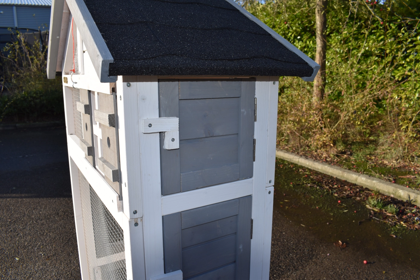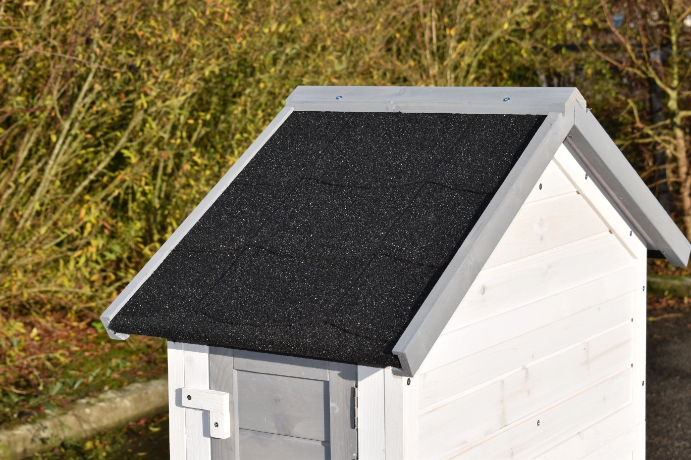 • Die Fertigbearbeitung dieses wirklich wunderschönen Vogelkäfigs erfolgte mit Dachpappe mit Schiefergranulat