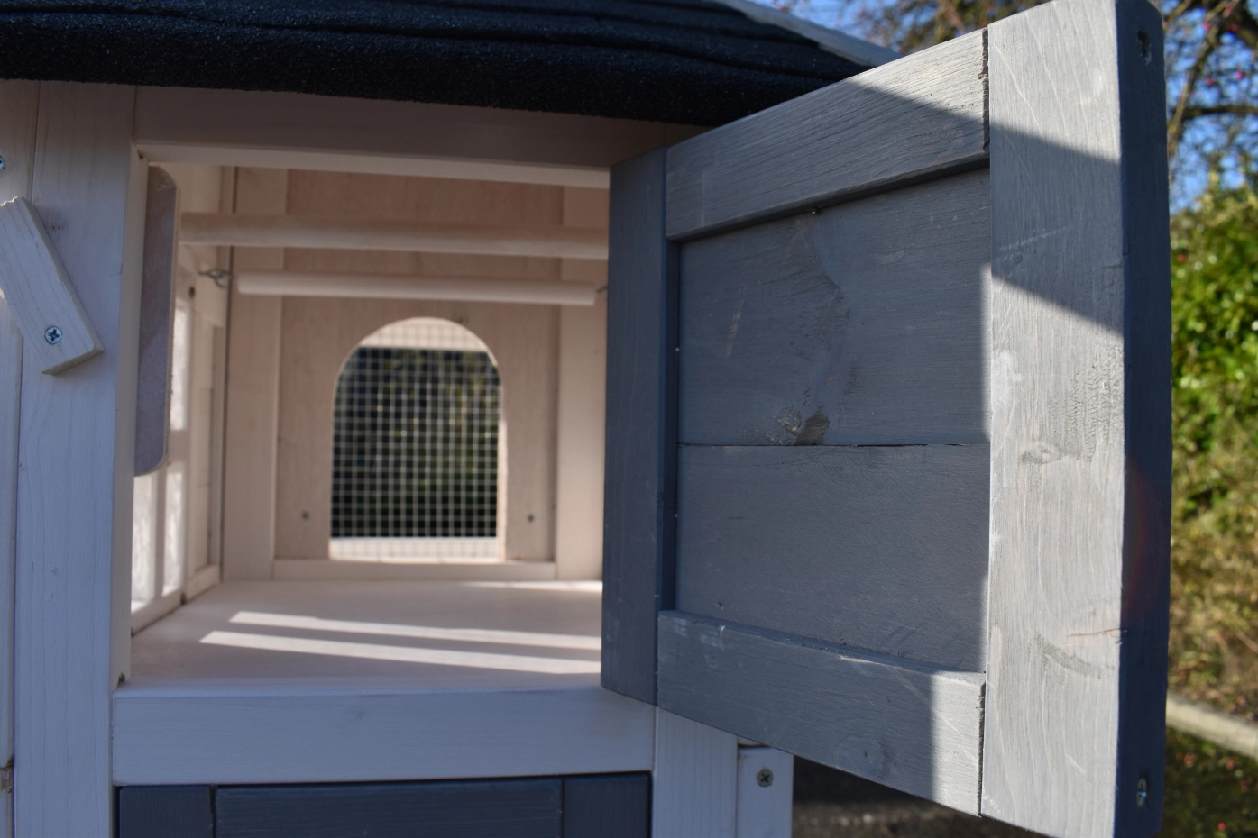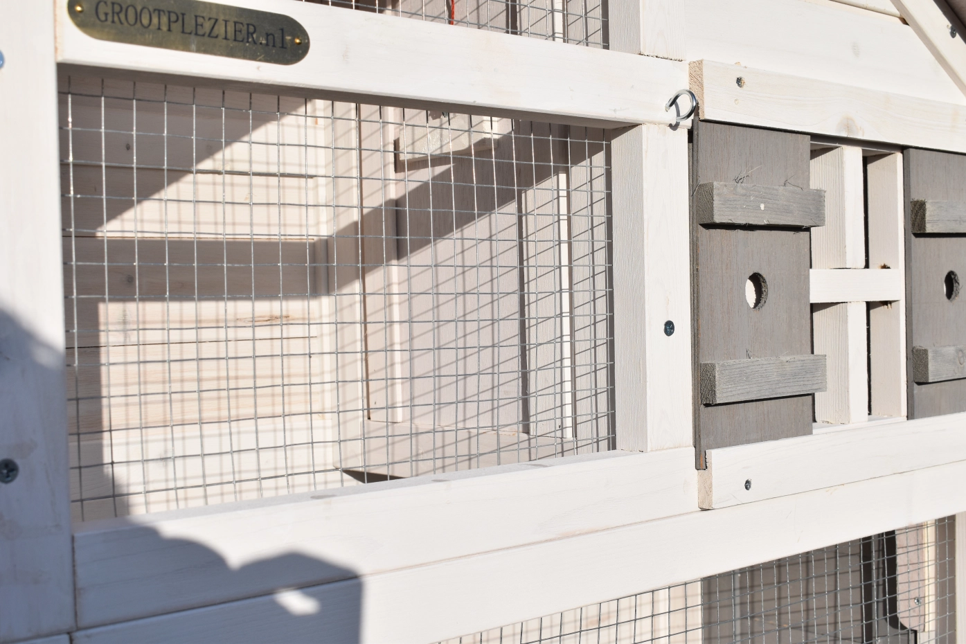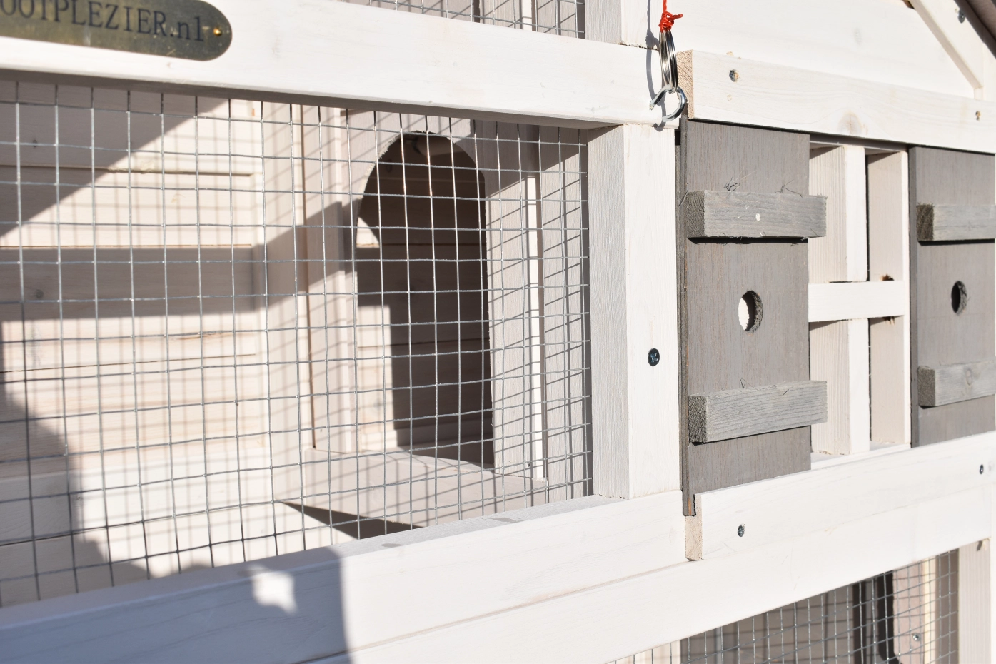• Das Schlafhaus der Voliere ist verriegelbar