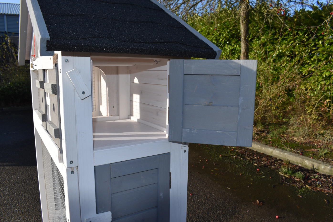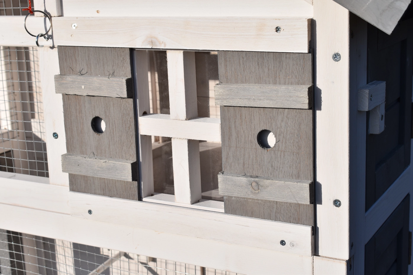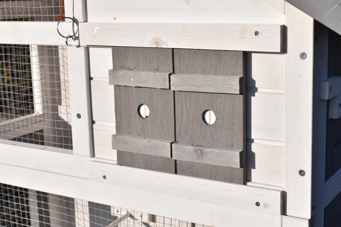 • Das Schlafhaus der Voliere ist verriegelbar