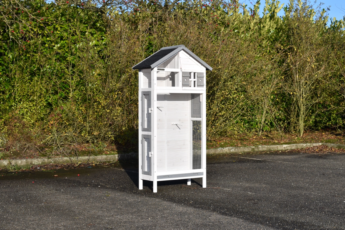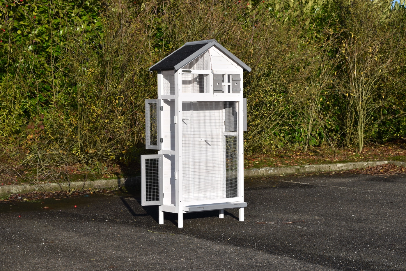 • Diese Volière verfügt für optimale Zugänglichkeit über großzügige Türen
