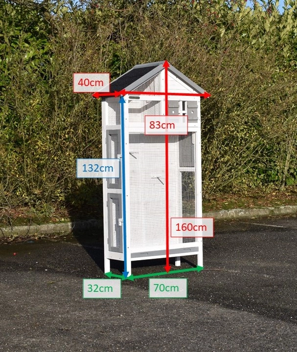 Der Voliere Sara Small ist ein schönes Käfig mit ein Schublade und viele, großë Türen, um der Stall einfach zu können reinigen. Diese Voliere ist einmal lasiert, aber wir empfehlen diese nochmals zu lasieren. Sie können die Lasur mitbestellen. Der max. Abmessungen sind 83x40x160cm.