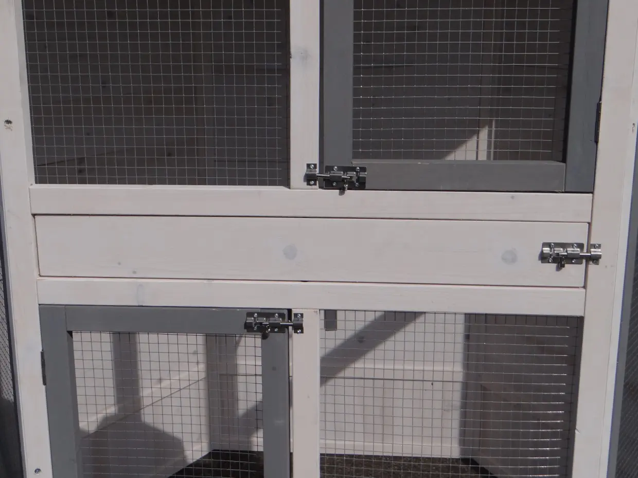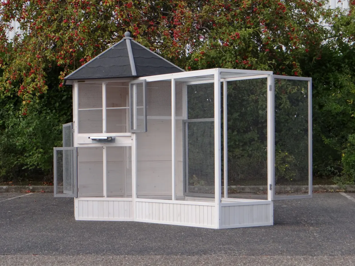 - Diese Volière verfügt für optimale Zugänglichkeit über großzügige Türen