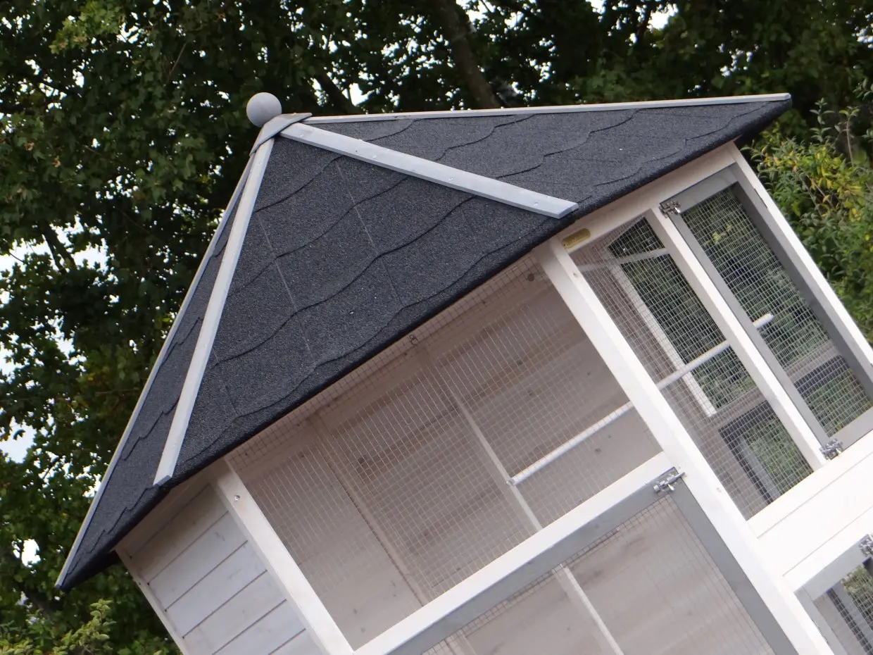 - Die Fertigbearbeitung dieses wirklich wunderschönen Vogelkäfigs erfolgte mit Dachpappe mit Schiefergranulat