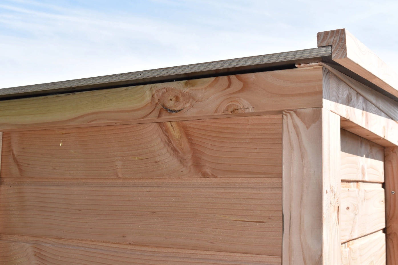 - Herstellt aus Douglasienholz. Rahmen sind 68x44mm, Bretter sind 18mm dicke. Dieses Douglasienholz hat eine lebensdauer von +/- 15 Jahre. Behandlung gegen Holzfäule nicht notwendig, aber dann wird das Holz schnell grau werden.
