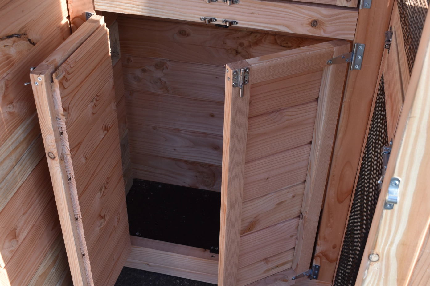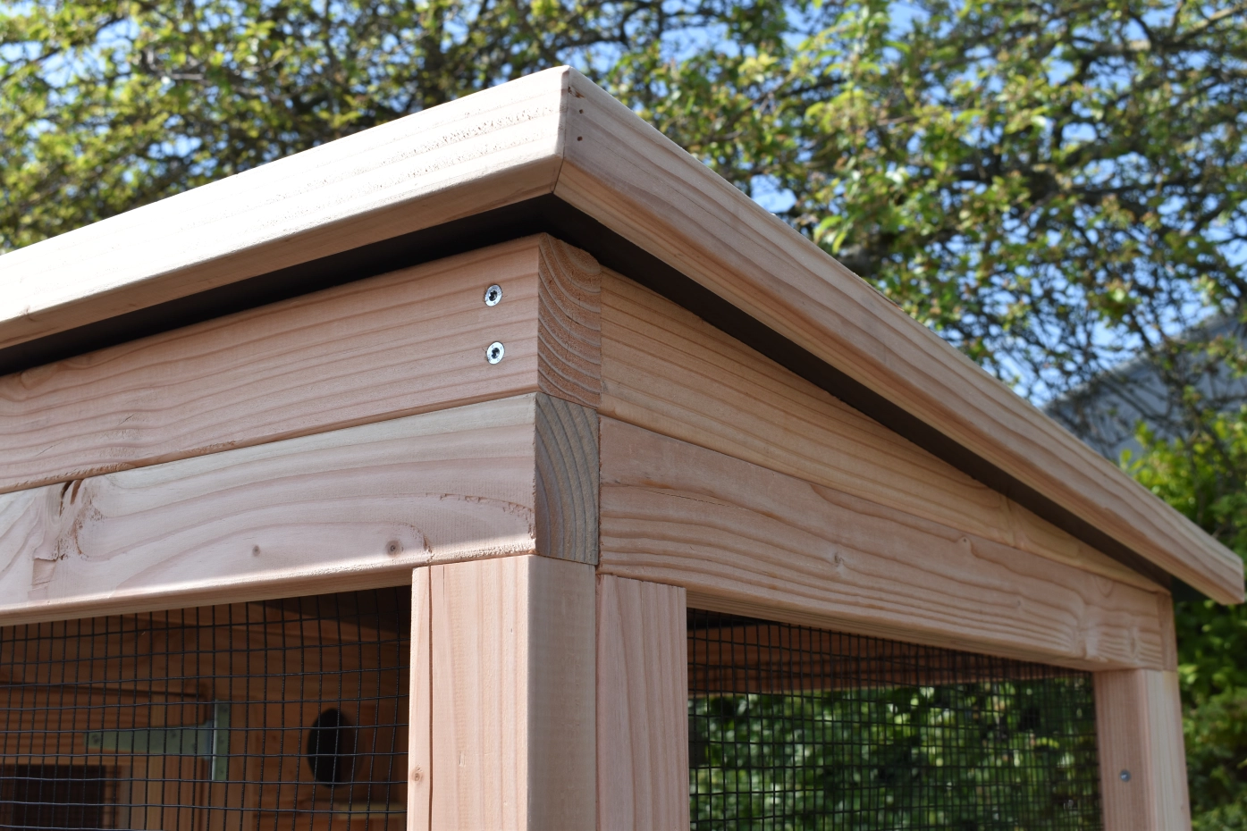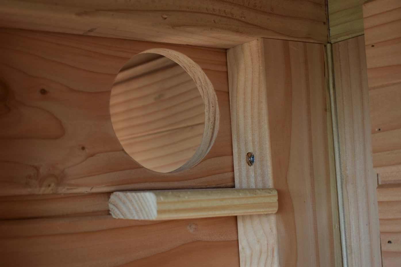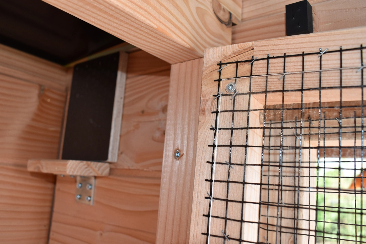 - Wenn draußen eine hohe Luftfeuchtigkeit herrscht, ist es auch im Inneren eines Stalls feucht. Die Innenseite von der Käfig können Sie lasieren um Schimmelbildung zu verhindern.