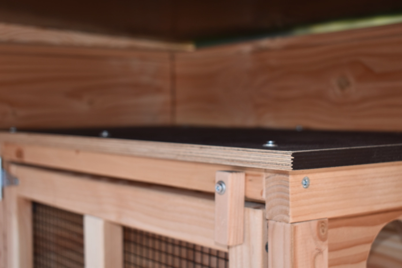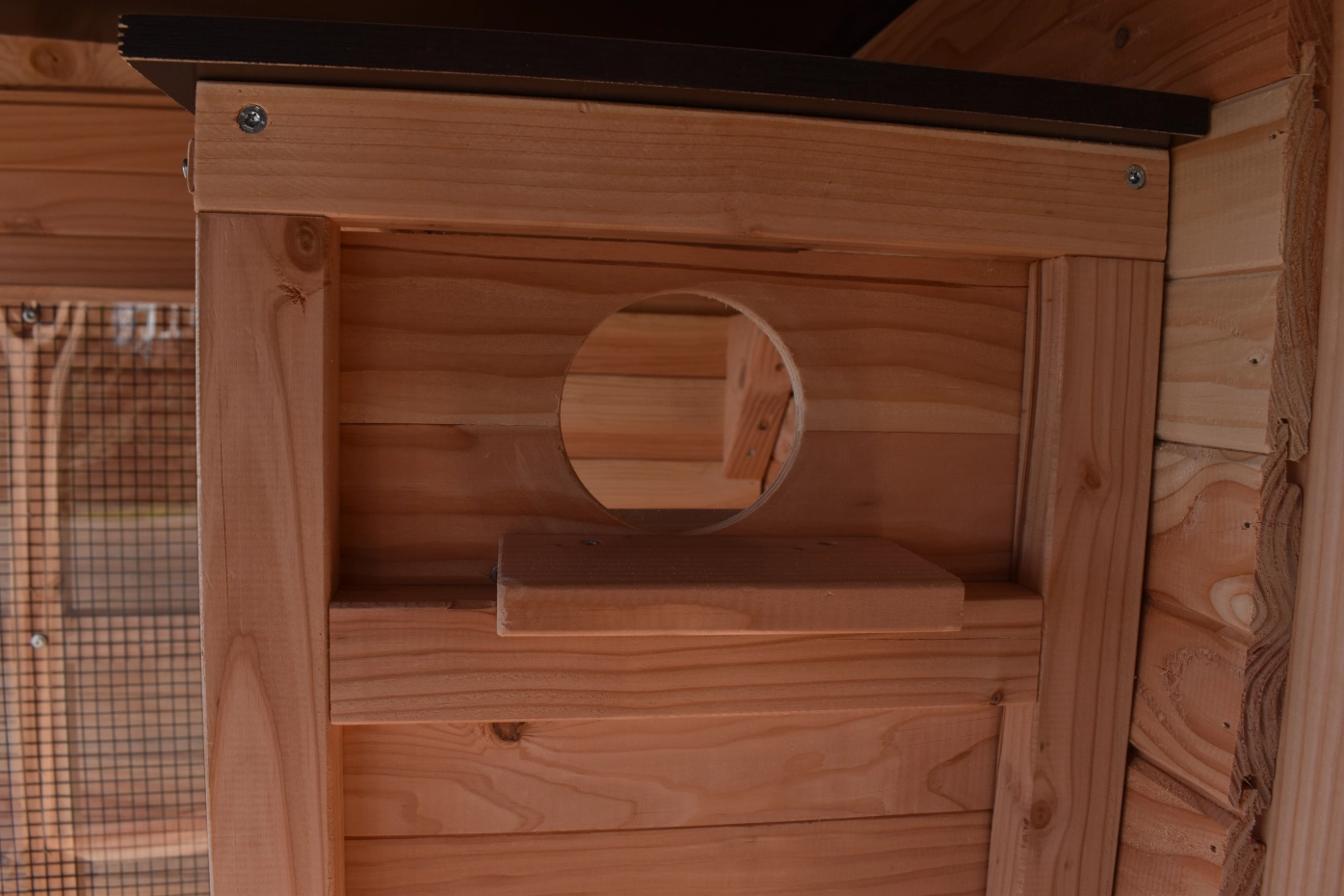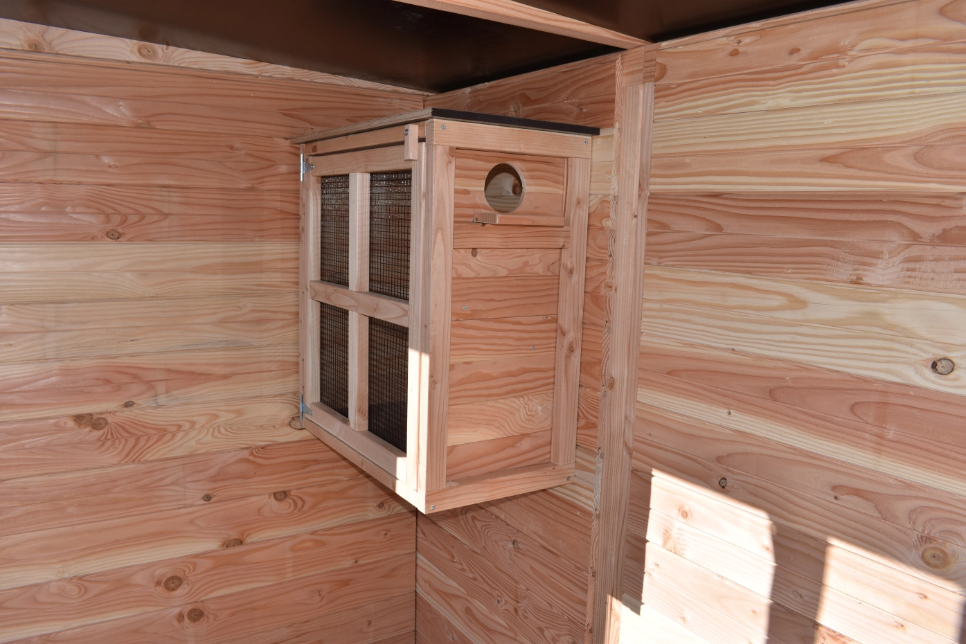 - Das Schützhaus der Voliere ist versehen mit einer Sitzstange