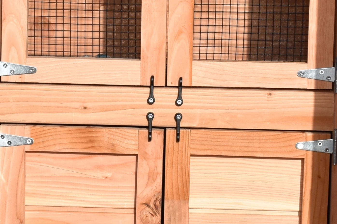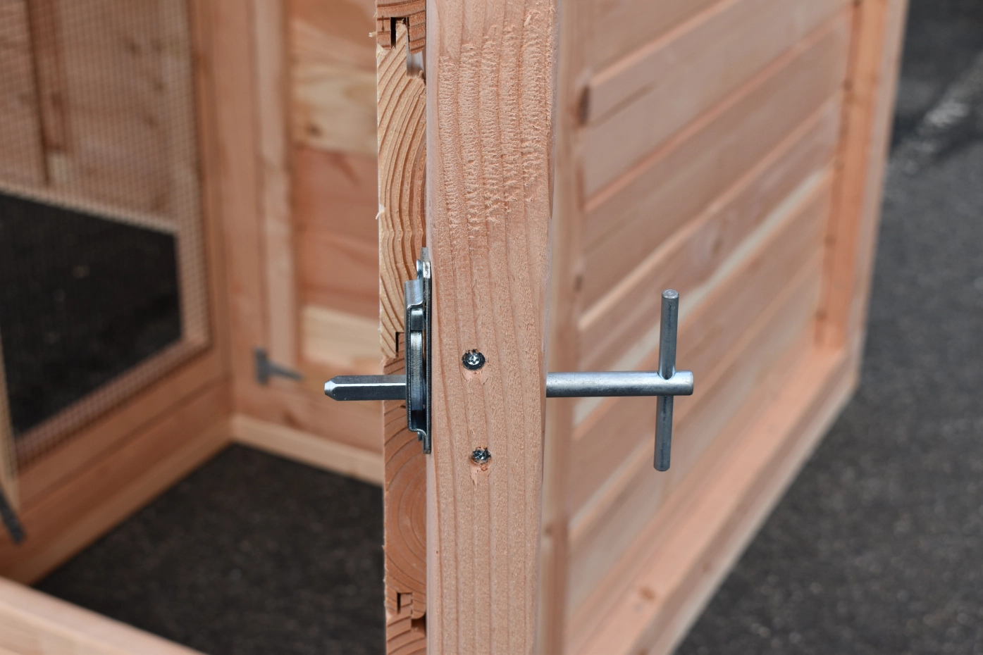 - Die Paneele sind ganz fertig. Bretter schon montiert, Tür und Schlösser schon montiert und Gitter schon befestigt. Deswegen ist der Aufbau ganz einfach.
