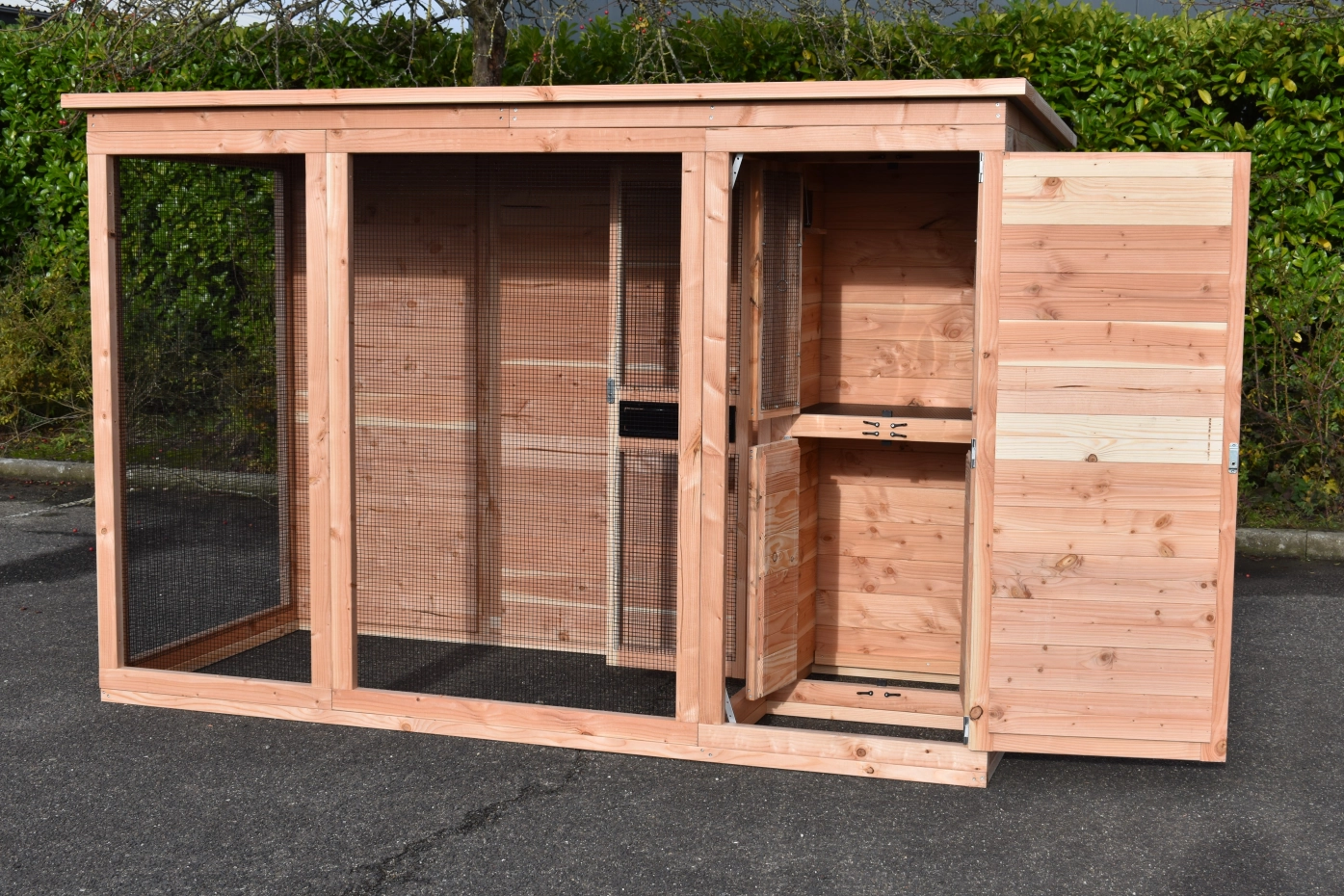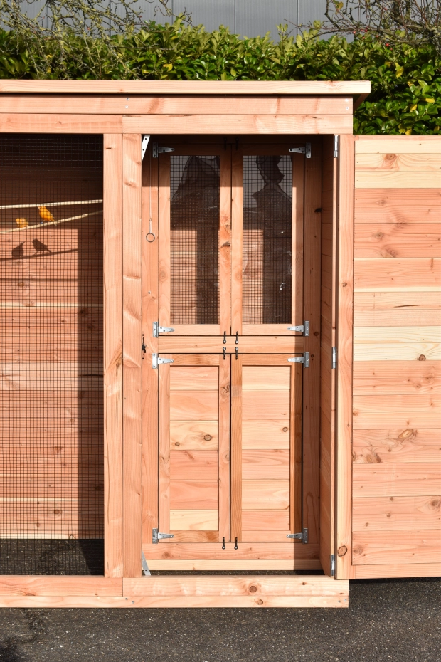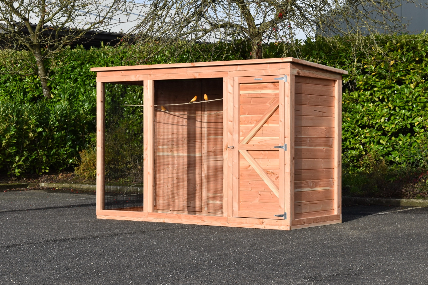 Voliere Flex 3+.1+ ist eine schöne Voliere für außen, mit überraschend schöne Details. Das Schutzhaus ist abschliessbar und mit 2 Türe versehen. Weiter gibt es noch Stauraum mit 2 Türe und ein Luxus-Dach.