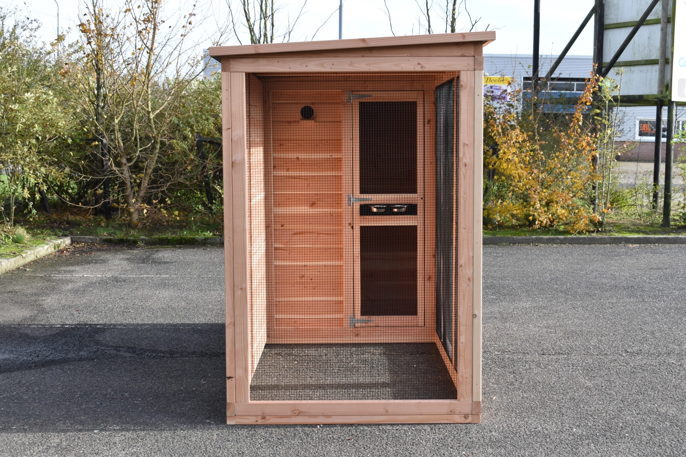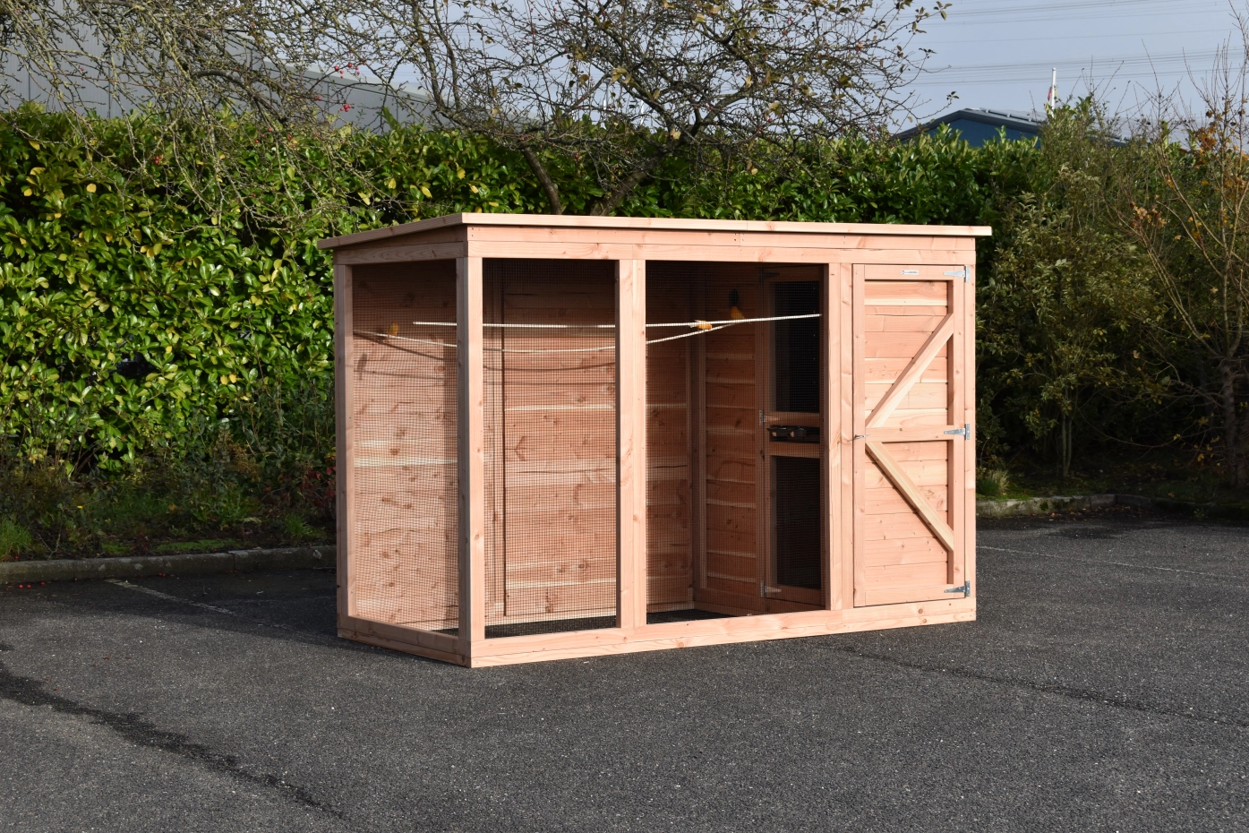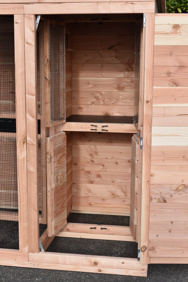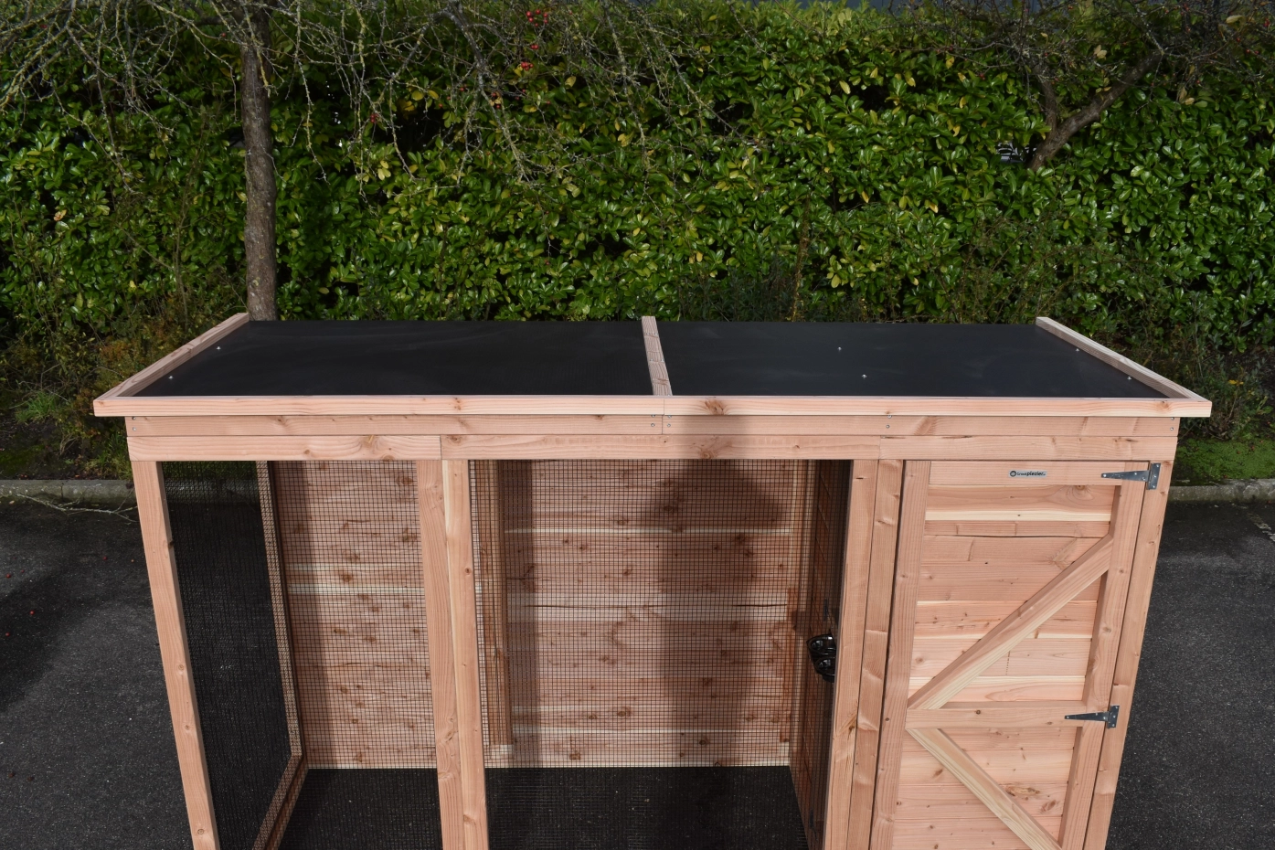 Voliere Flex 3+.1+ ist eine schöne Voliere für außen, mit überraschend schöne Details. Das Schutzhaus ist abschliessbar und mit 2 Türe versehen. Weiter gibt es noch Stauraum mit 2 Türe und ein Luxus-Dach.