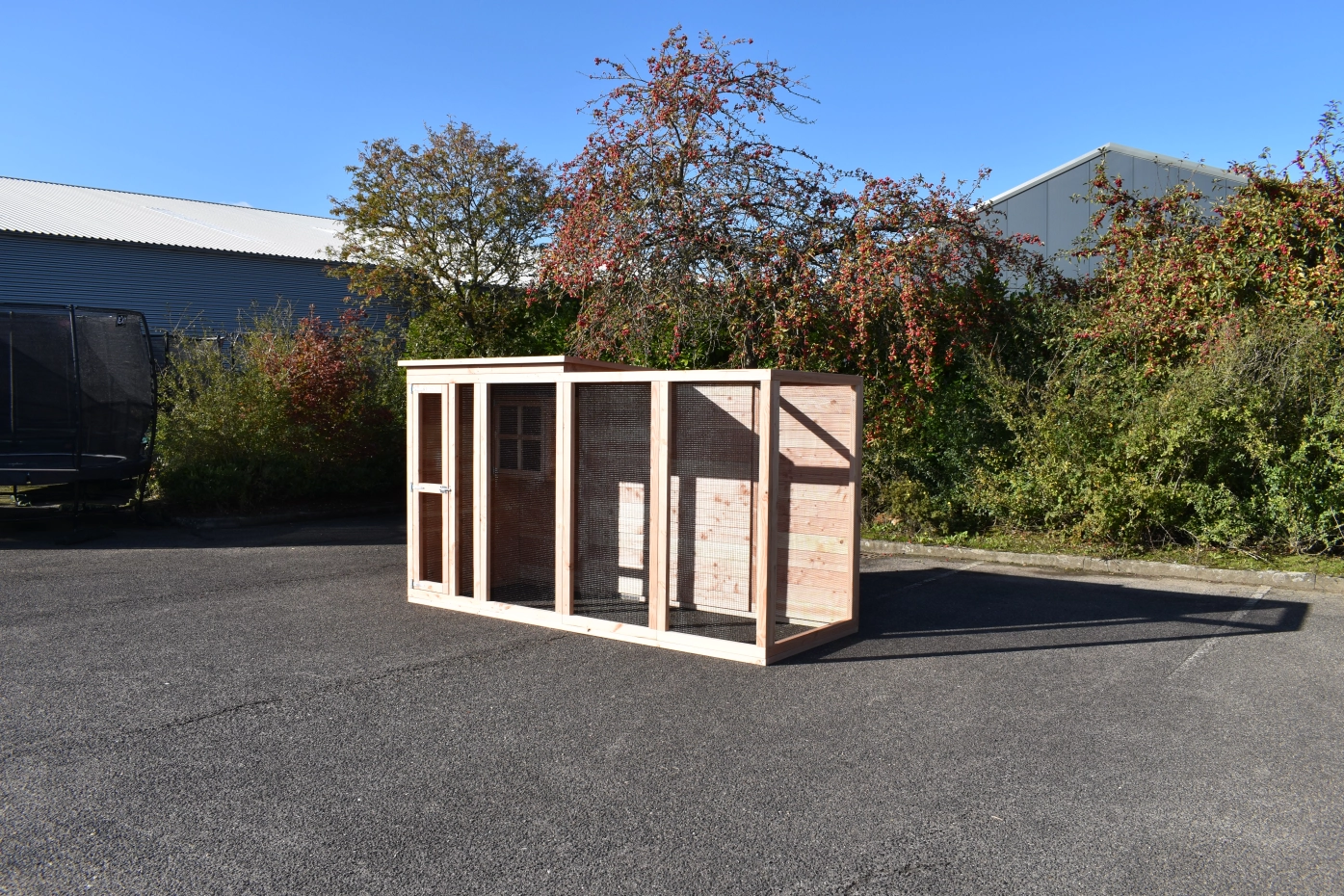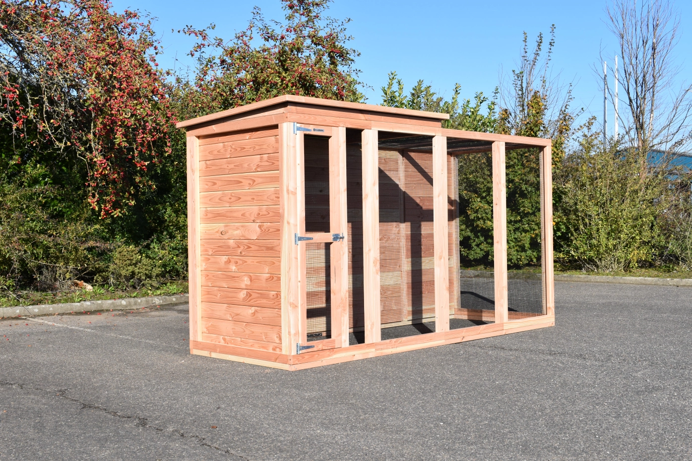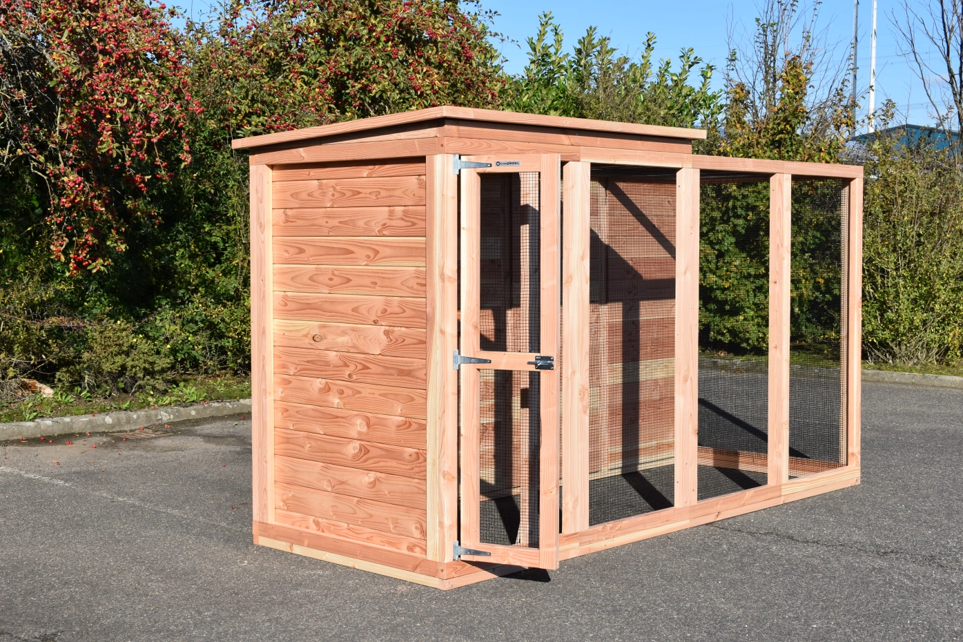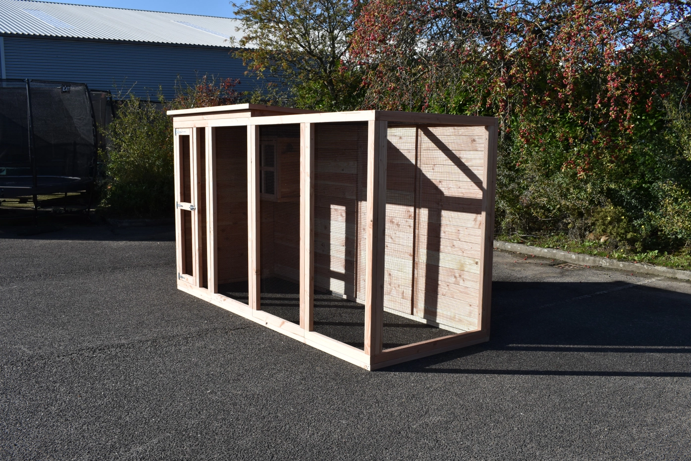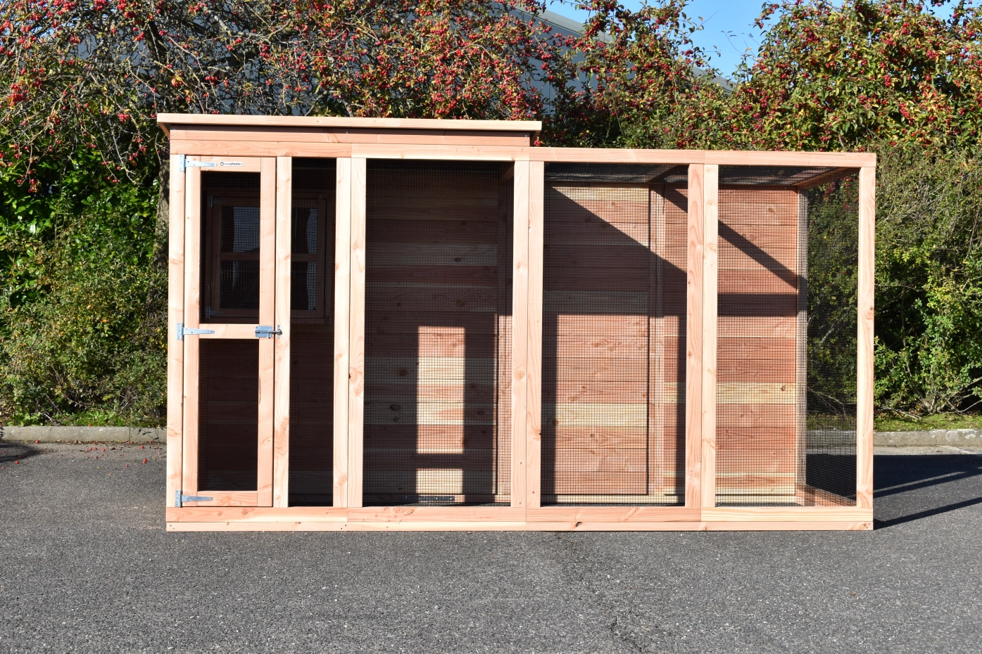 Voliere Flex 4.1+ ist ein große Voliere mit ein kleines Schlafraum. Der Schlafraum ist ausgestattet mit 2 Sitzstange. Diese Voliere kann angepasst werden nach Ihre eigene Wünschen. Der Voliere ist herstellt aus Douglasienholz.