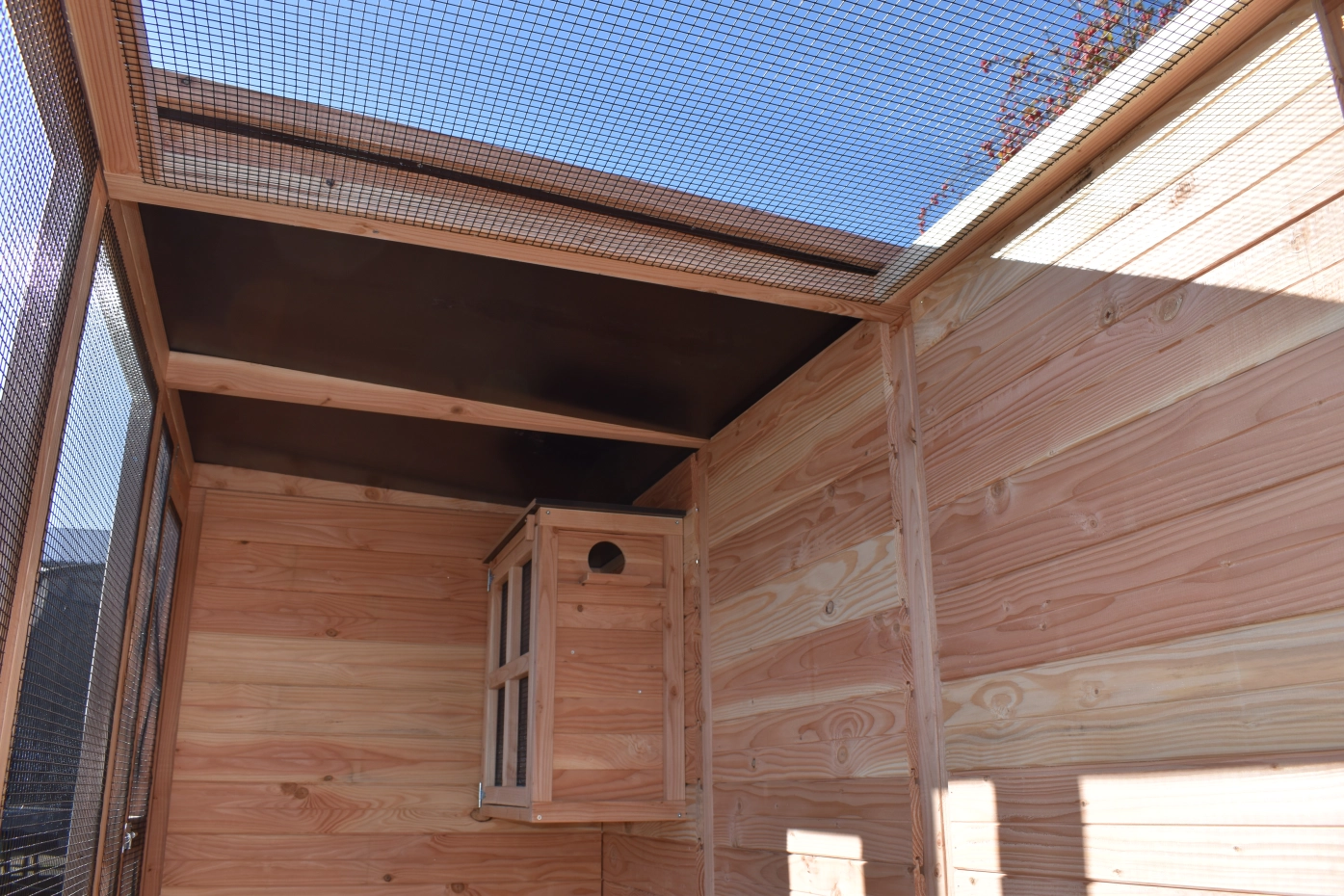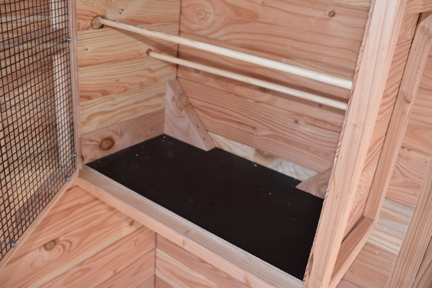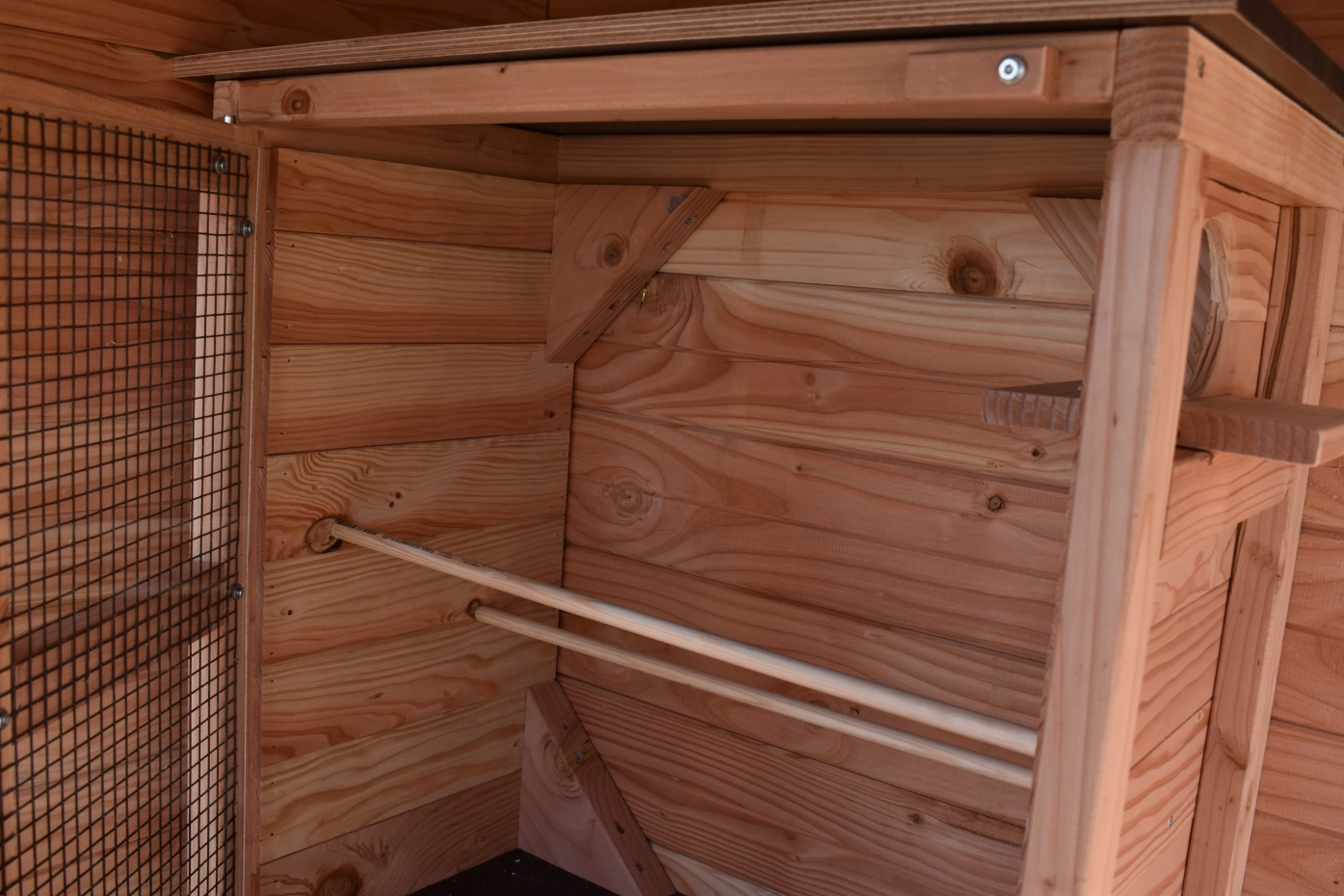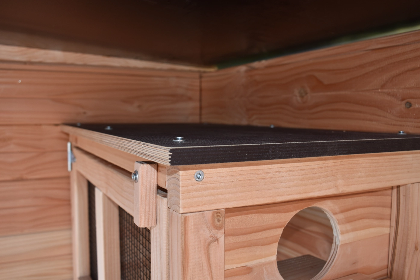 - Wenn draußen eine hohe Luftfeuchtigkeit herrscht, ist es auch im Inneren eines Stalls feucht. Die Innenseite von der Käfig können Sie lasieren um Schimmelbildung zu verhindern.
