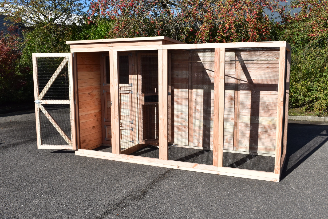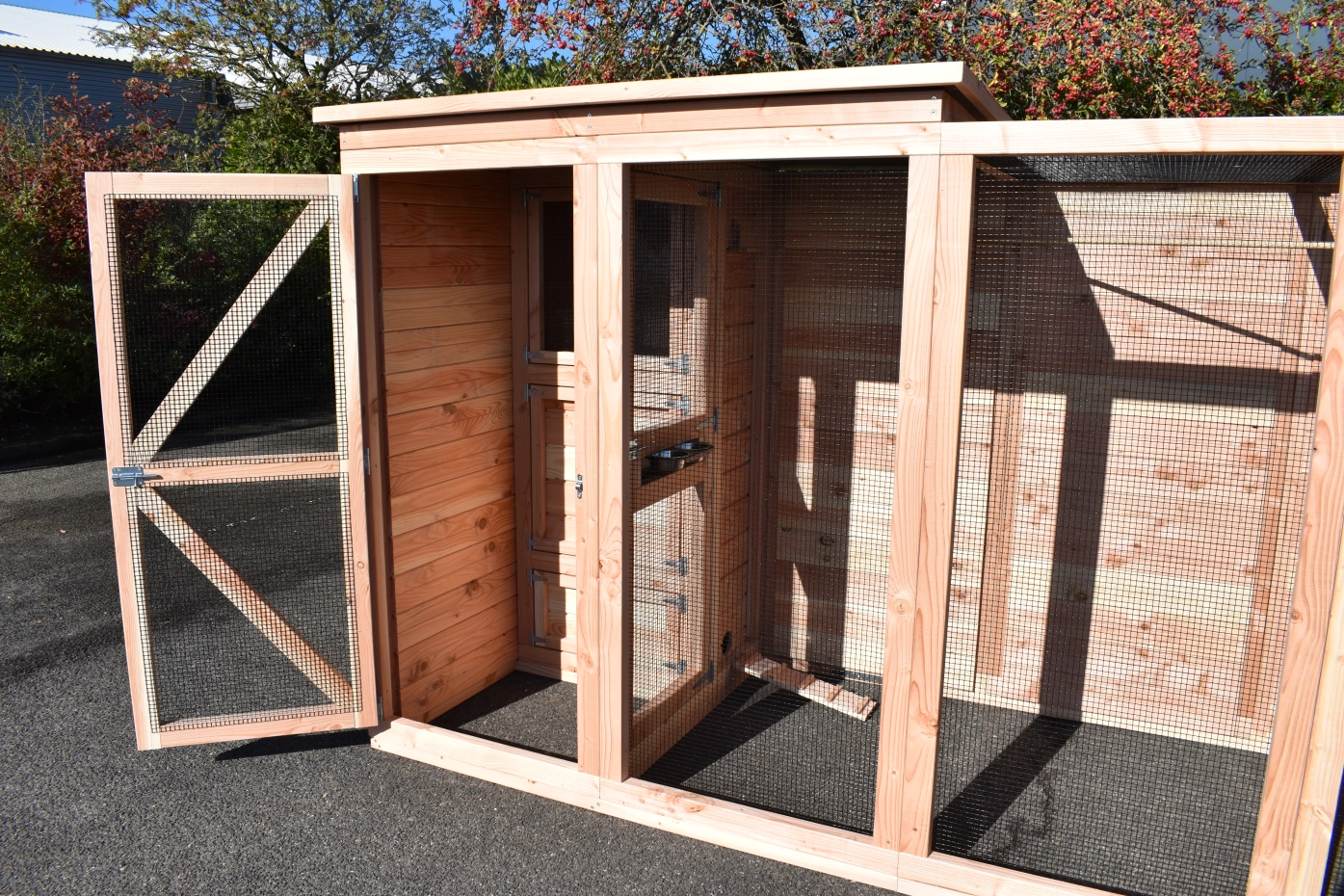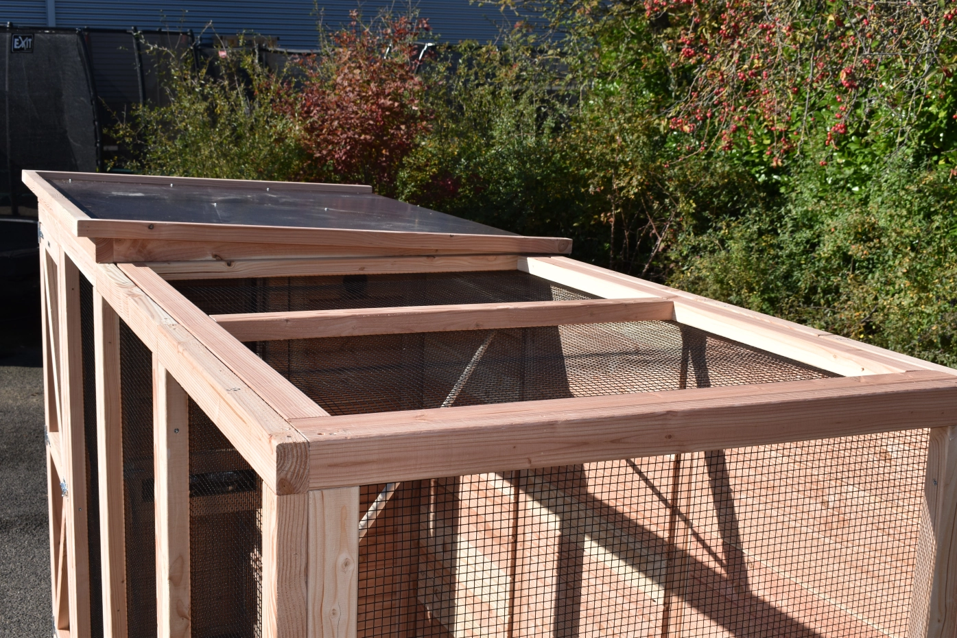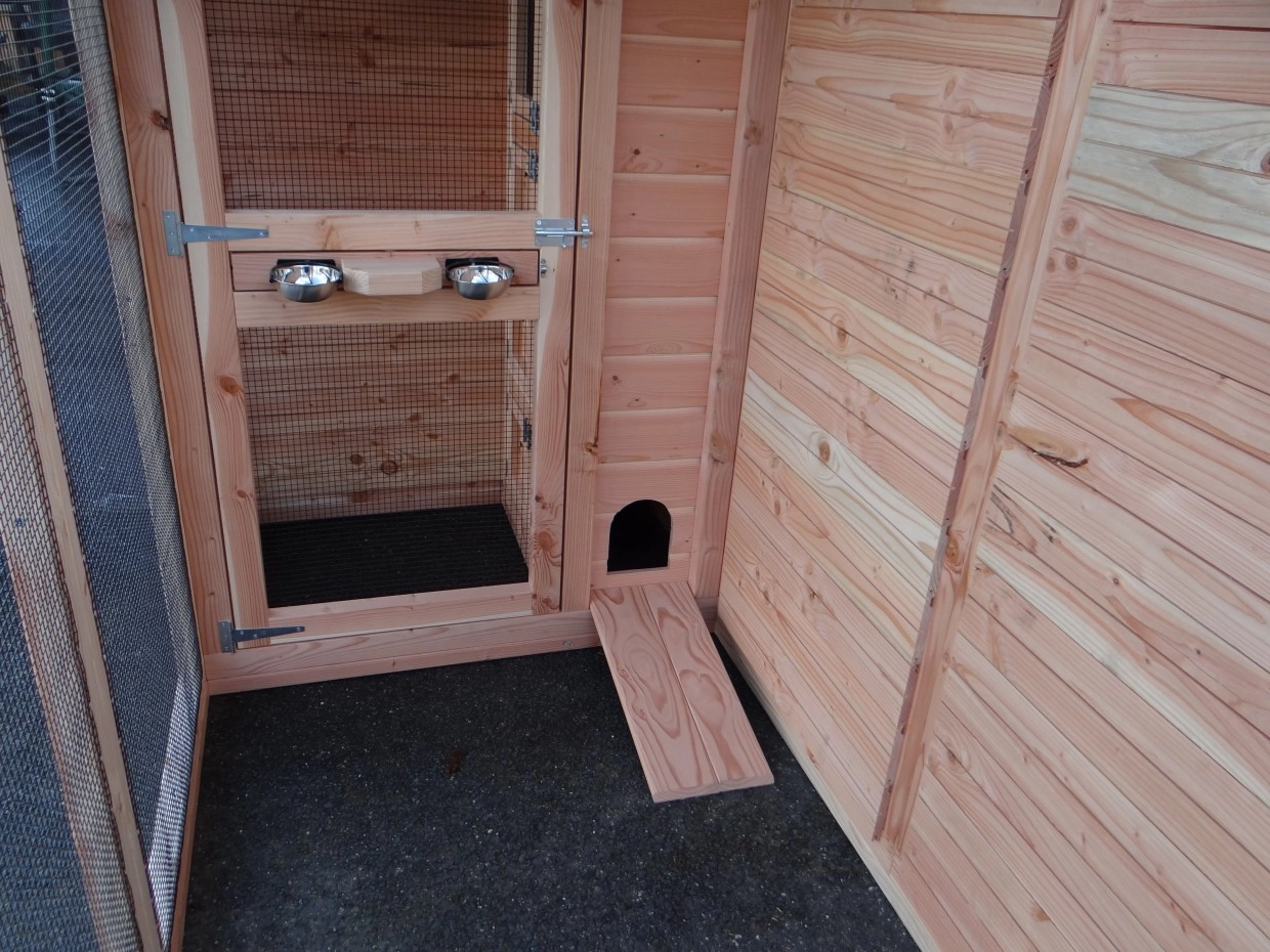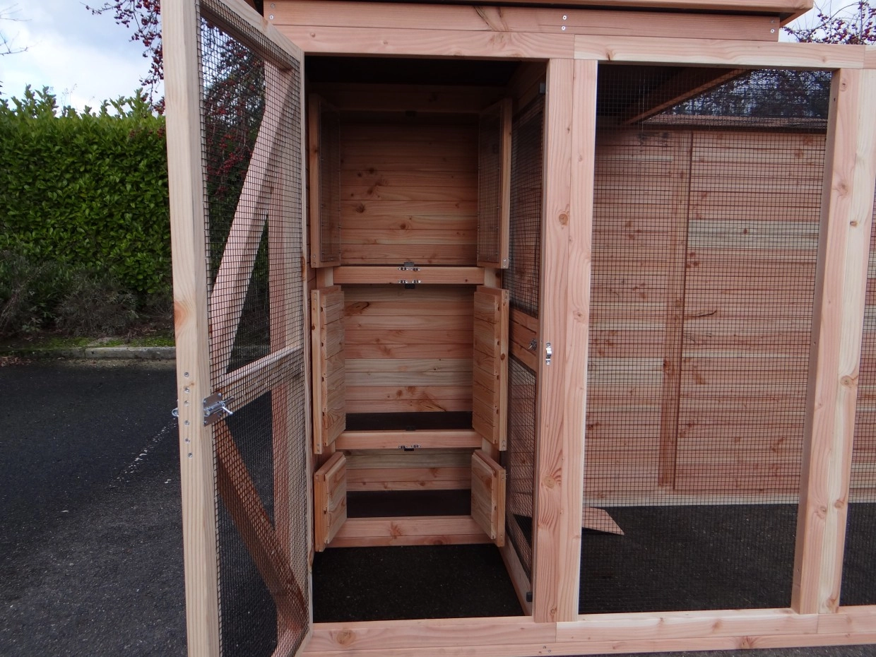 - Mit Schleuse für eine sichere Zugang zur Voliere. Die Türe sind von beiden Seiten zu sperren.