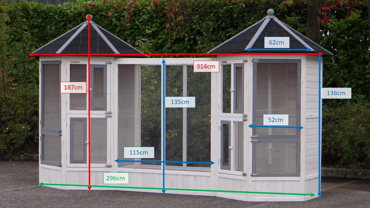 | Innenquerschnitt | Beide Hauptvoliere: 99cm |