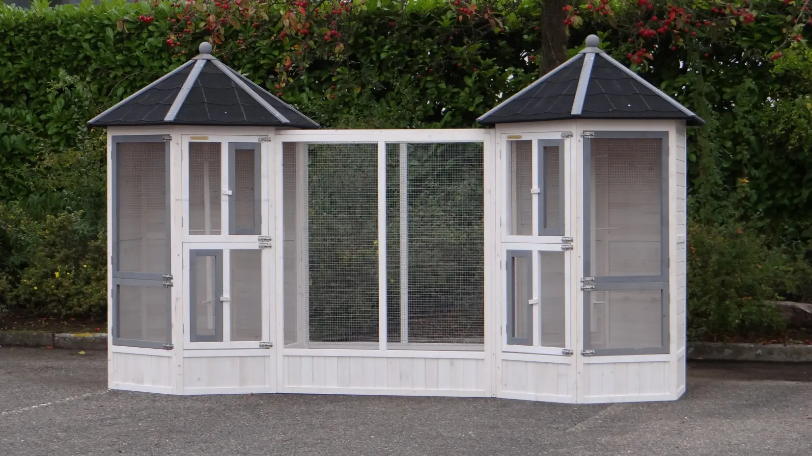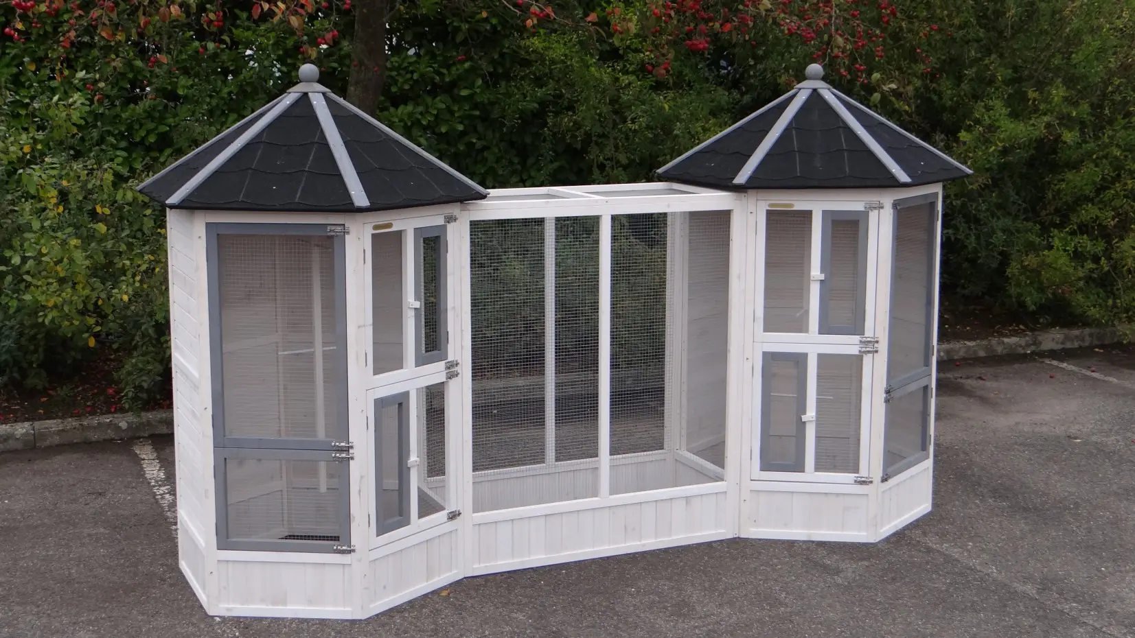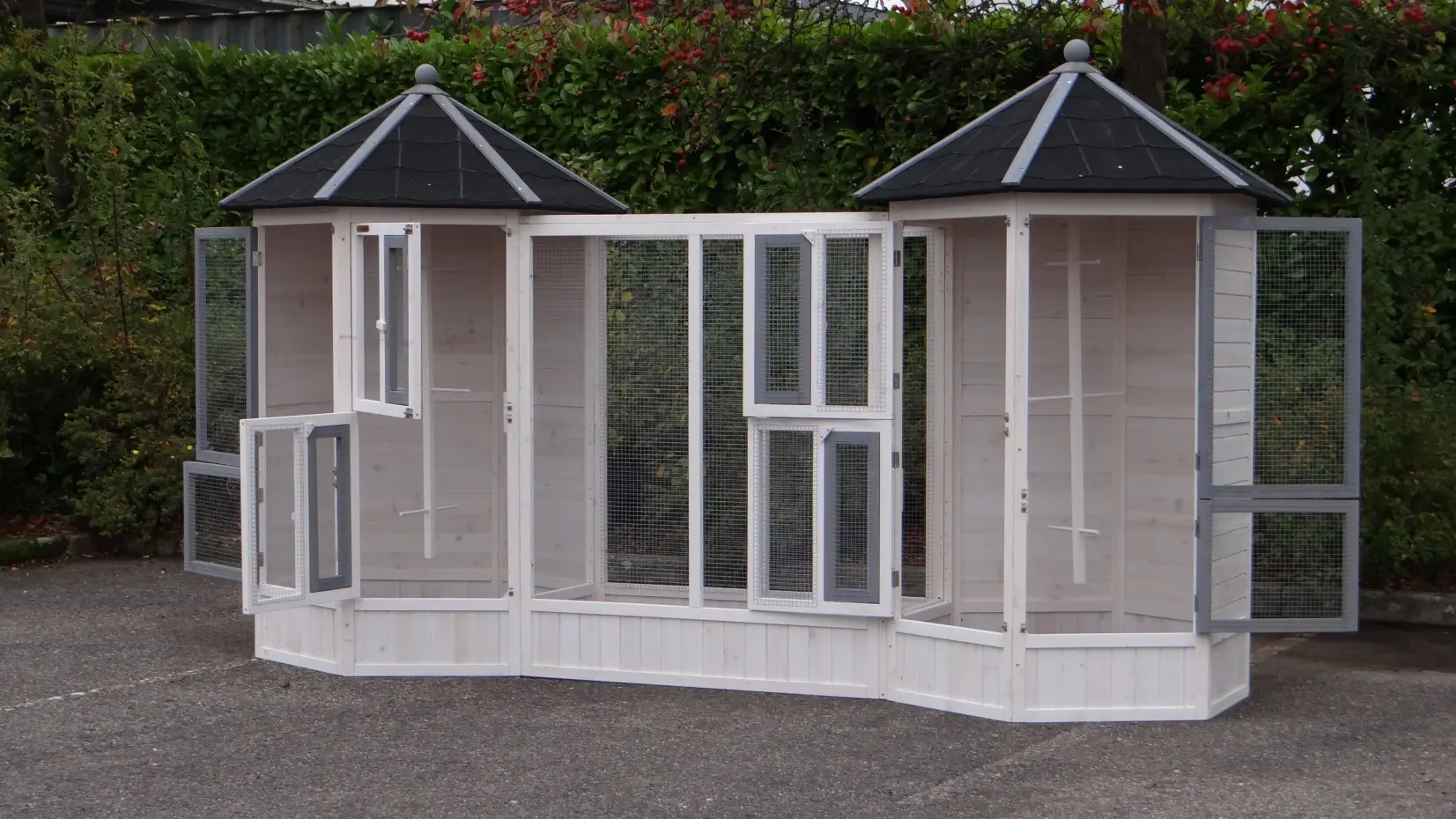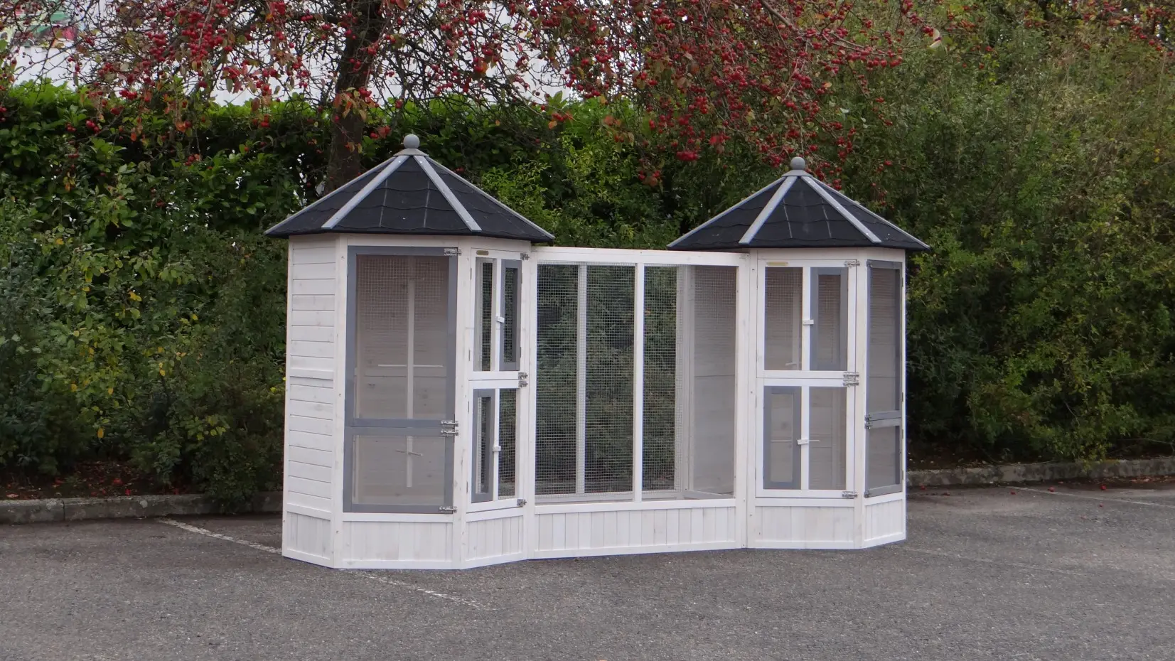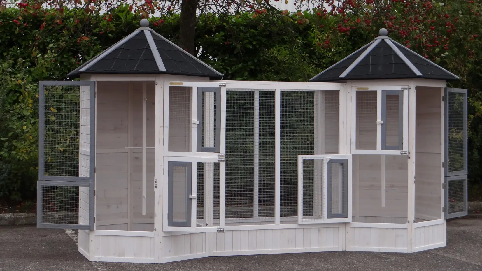 - Diese Volière verfügt für optimale Zugänglichkeit über großzügige Türen