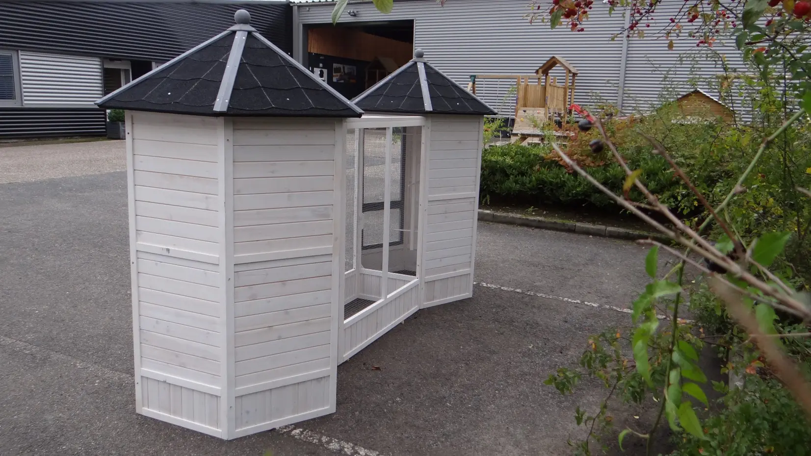 - Diese Voliere ist versehen mit einem Füttersystem. Dadurch können die Vögel einfach gefüttert werden