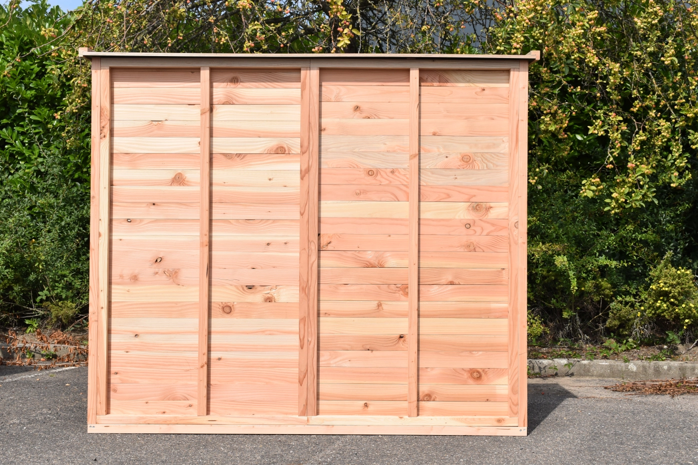 - Herstellt aus Douglasienholz. Rahmen sind 68x44mm, Bretter sind 18mm dicke. Dieses Douglasienholz hat eine lebensdauer von +/- 15 Jahre. Behandlung gegen Holzfäule nicht notwendig, aber dann wird das Holz schnell grau werden.