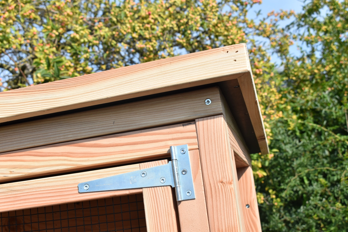 - Die Paneele sind ganz fertig. Bretter schon montiert, Tür und Schlösser schon montiert und Gitter schon befestigt. Deswegen ist der Aufbau ganz einfach.