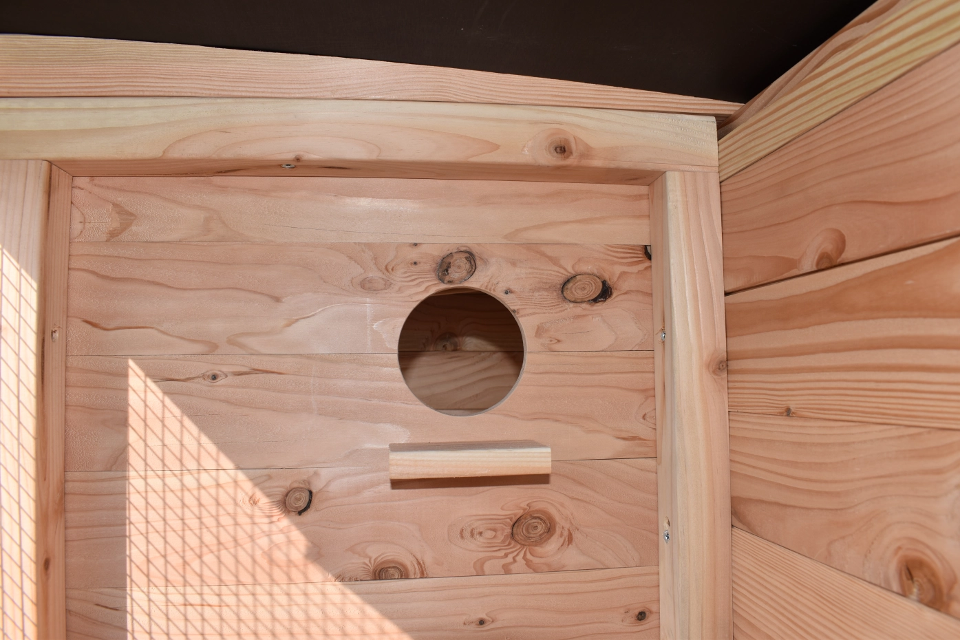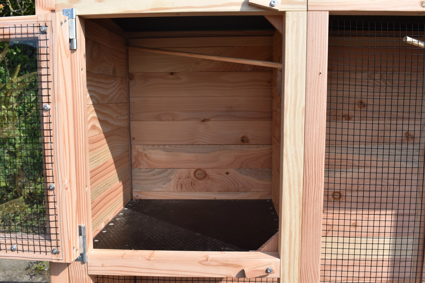 - Die Rückwand dieses Stalles ist aus massivem Vollholz.
