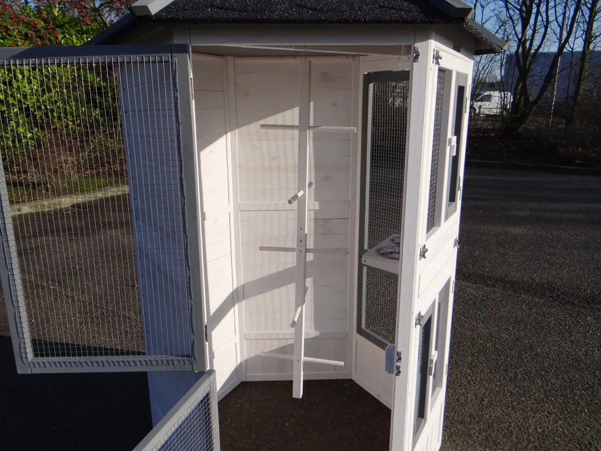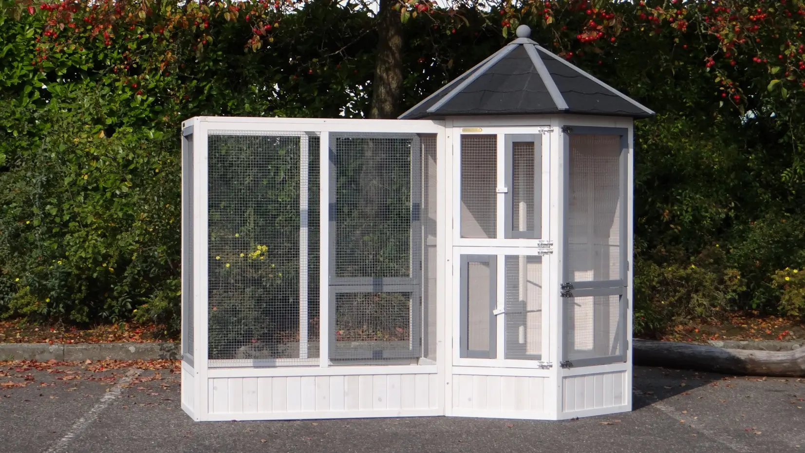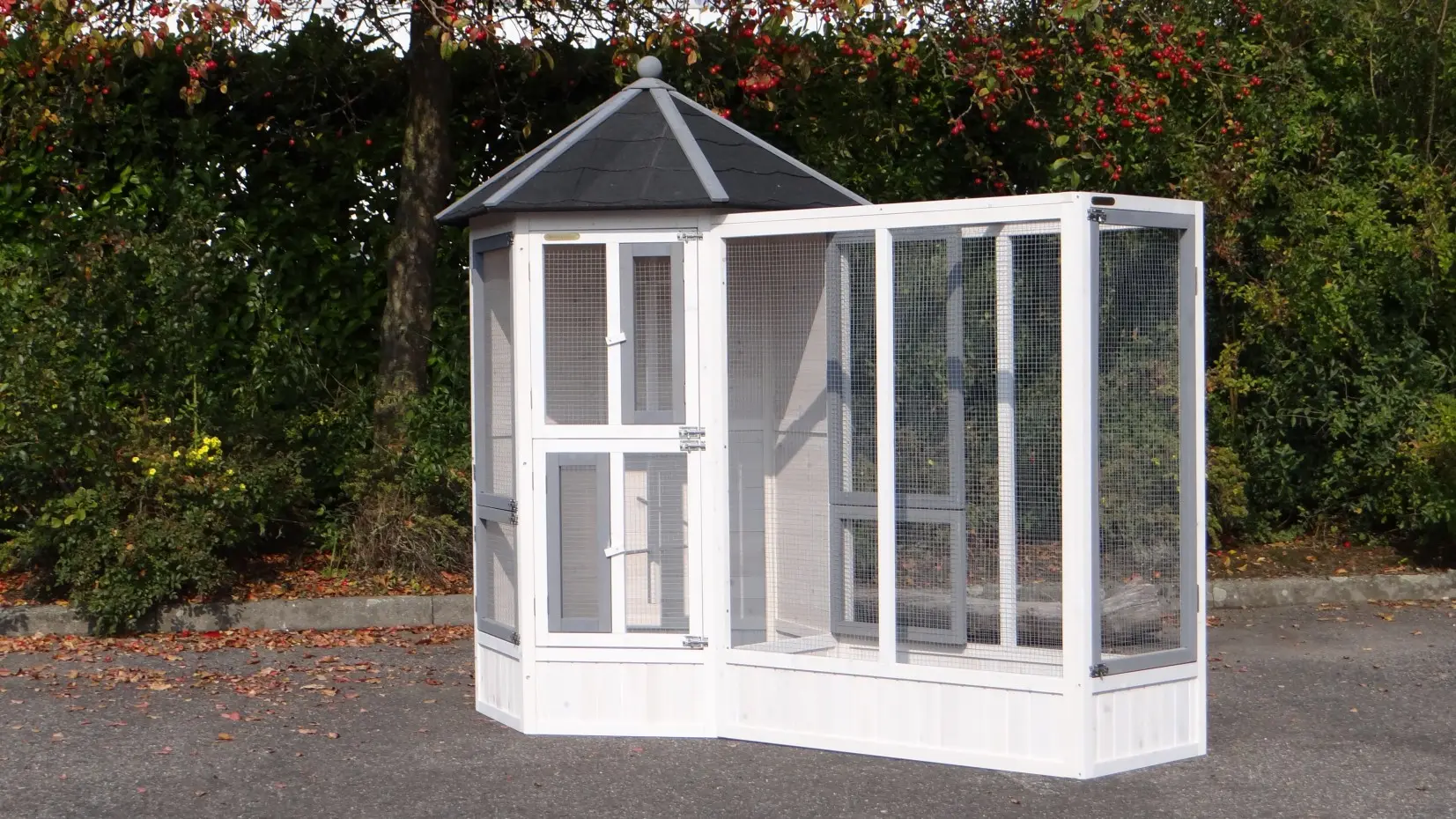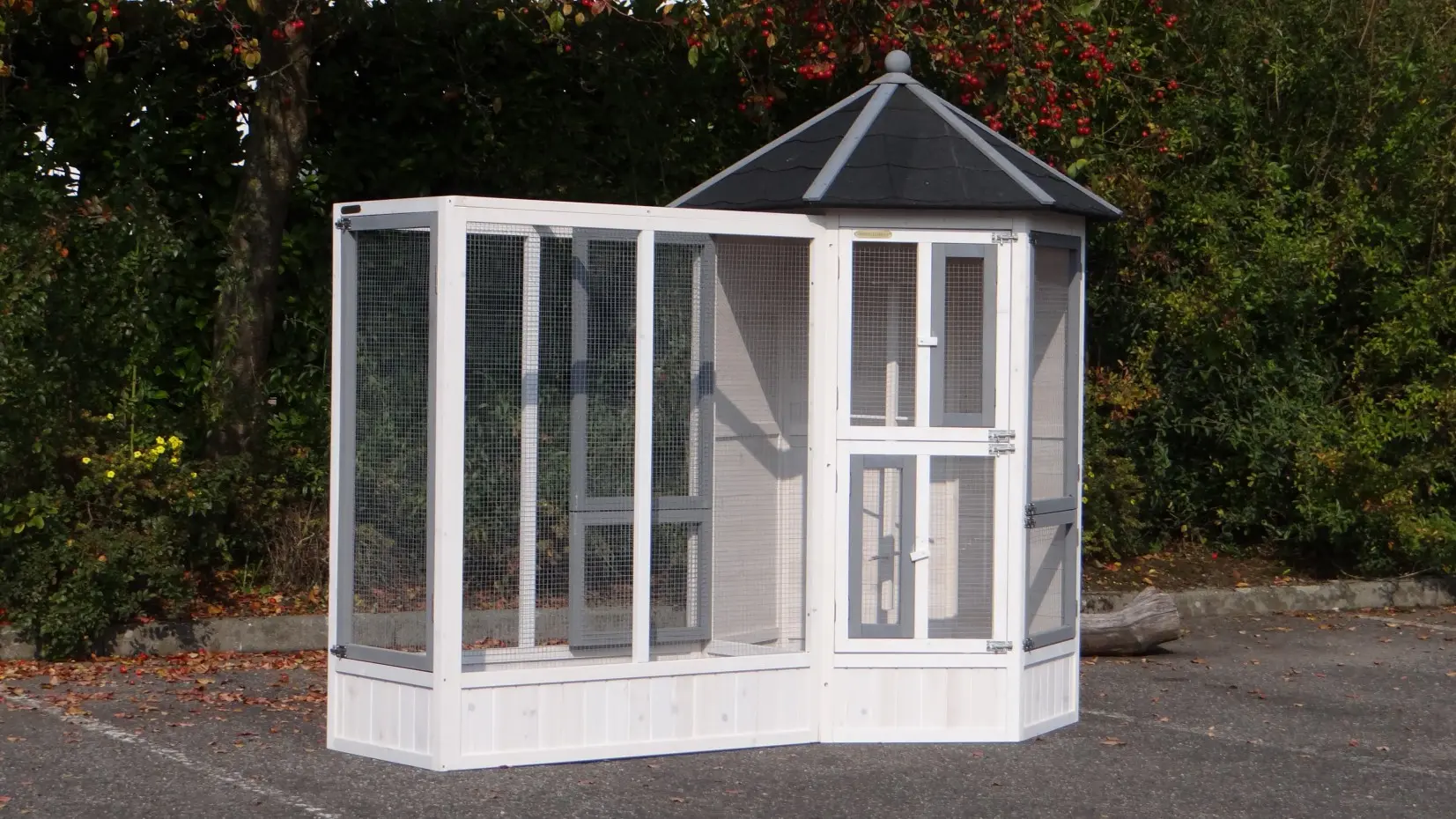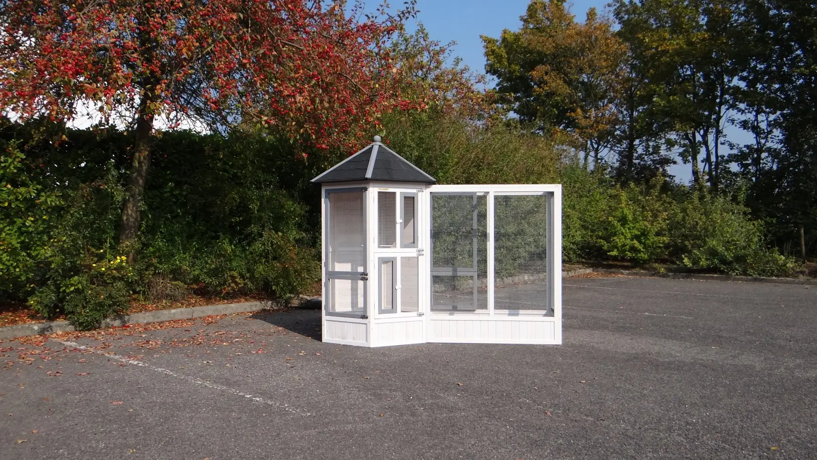 - Diese Voliere ist versehen mit einem Füttersystem. Dadurch können die Vögel einfach gefüttert werden