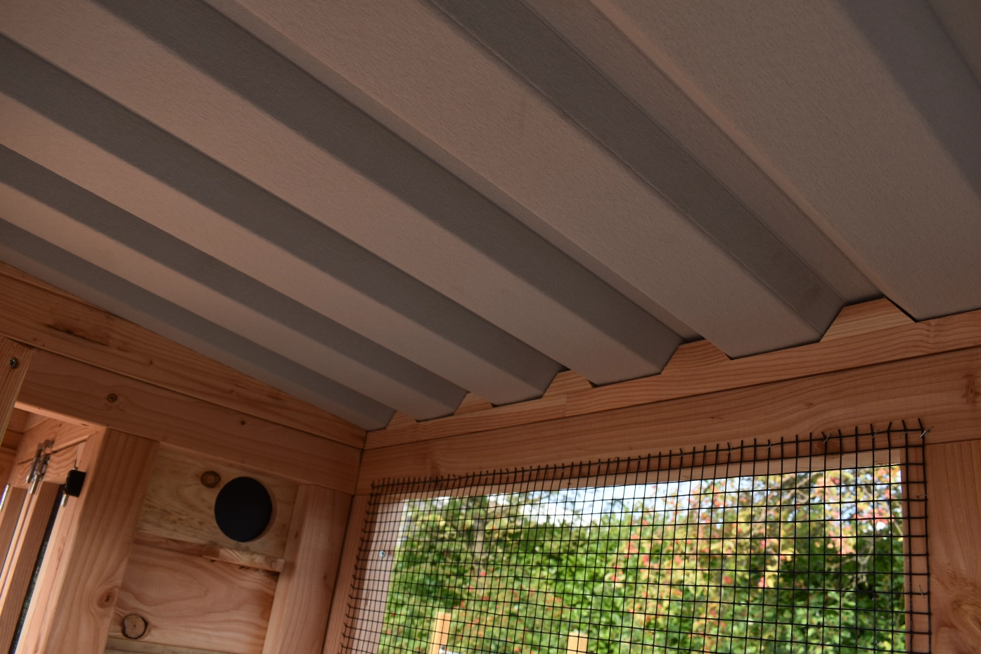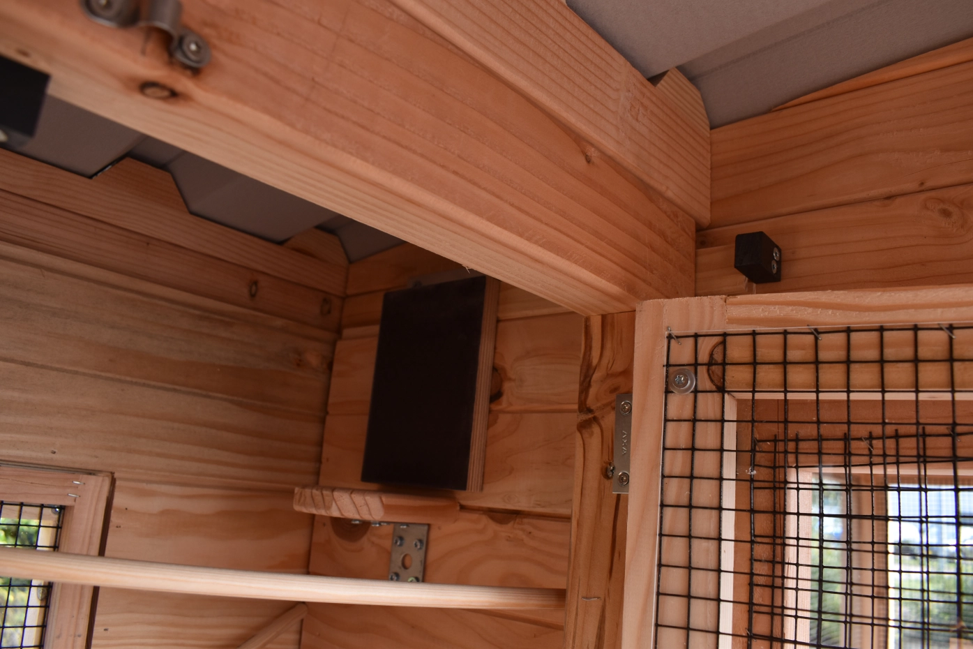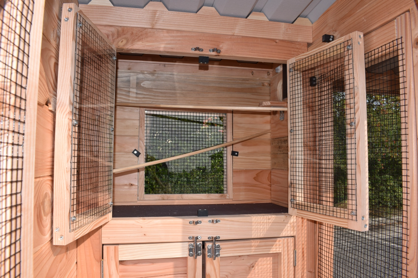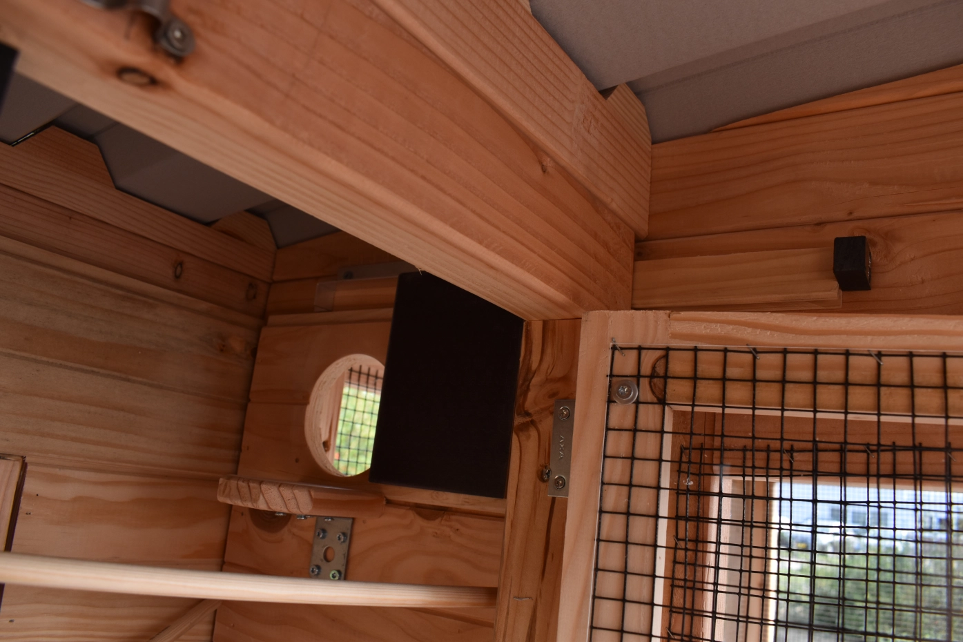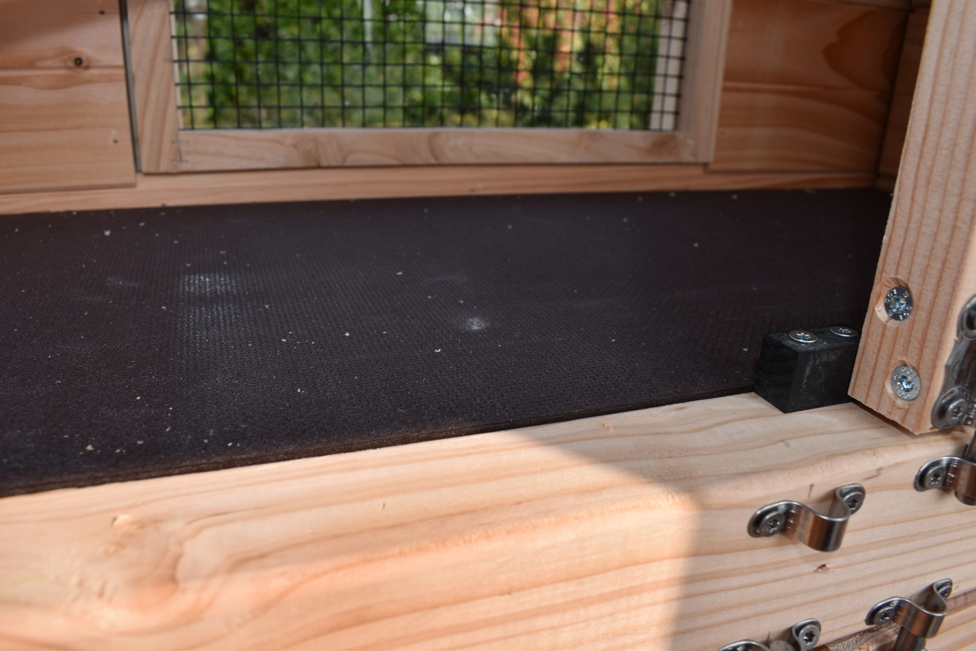 - Wenn draußen eine hohe Luftfeuchtigkeit herrscht, ist es auch im Inneren eines Stalls feucht. Die Innenseite von der Käfig können Sie lasieren um Schimmelbildung zu verhindern.