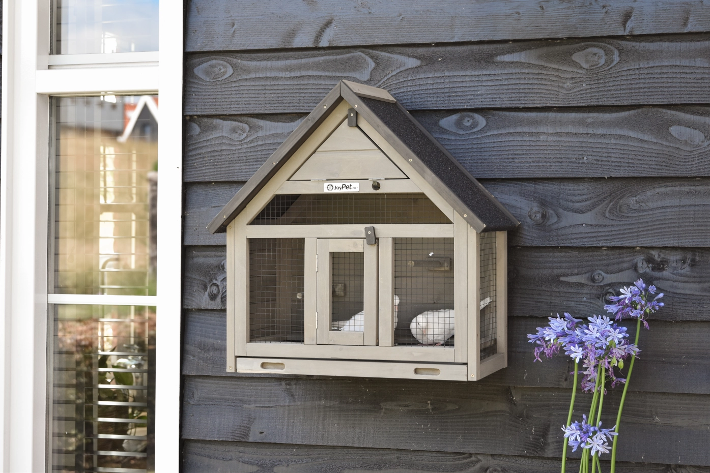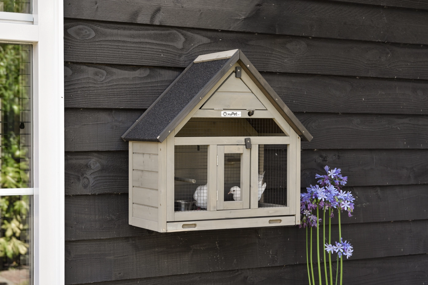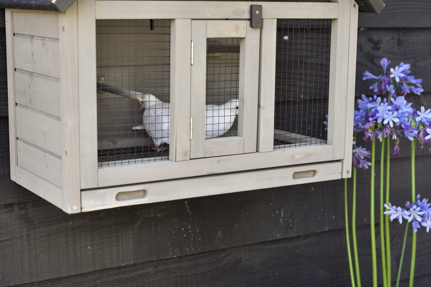 Wandvoliere Matty Small ist ideal für 2 kleine Vögel. Die praktische Schublade mit Drahtgitter darüber sorgt dafür, dass Ihre Vögel beim Reinigen sicher bleiben. Das Schlafhäuschen ist verschließbar, 3 Sitzstangen sind enthalten und mit den mitgelieferten Haken lässt sich die Voliere ganz einfach an der Wand befestigen.